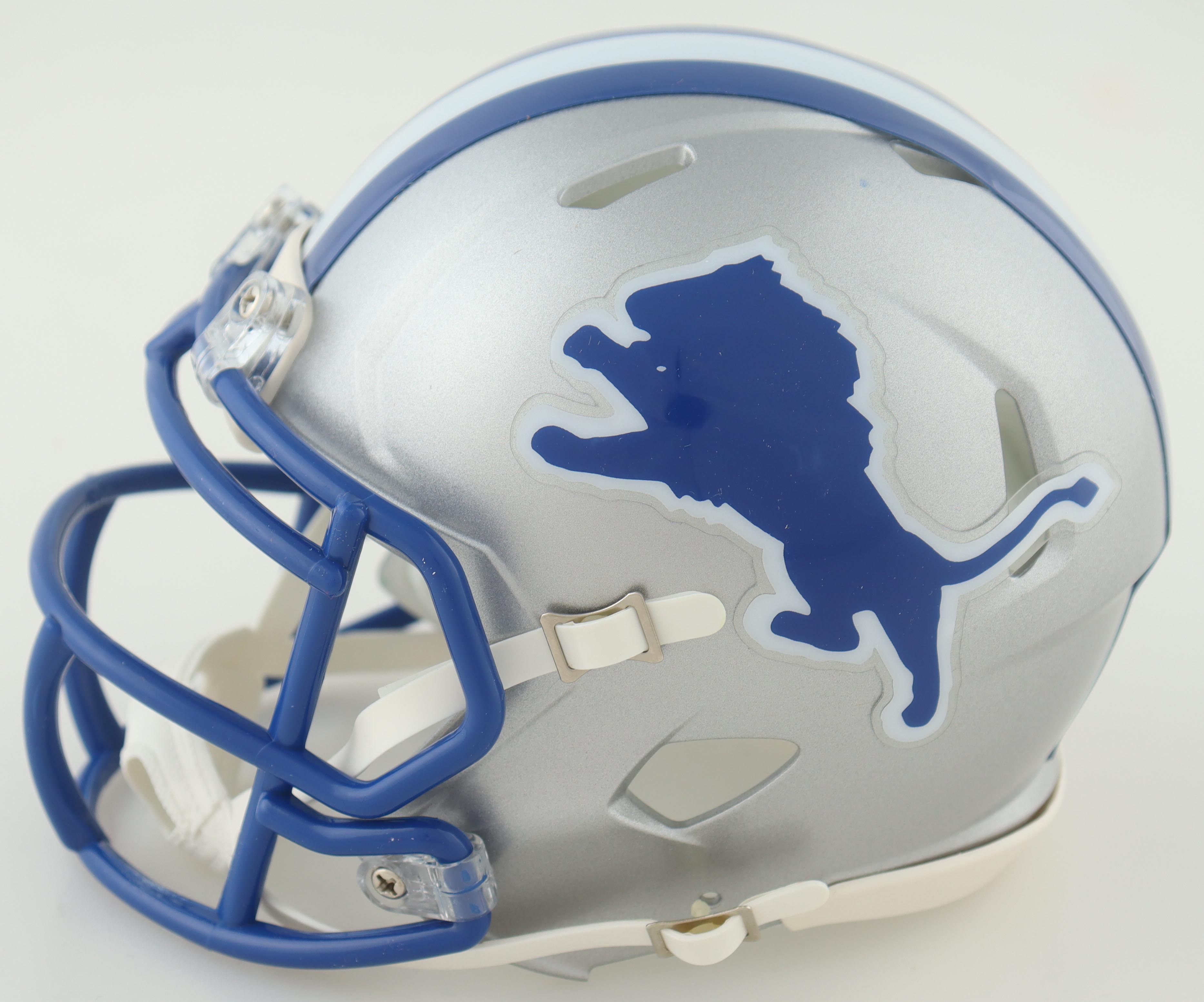 Riddell Detroit Lions throwback speed mini helmet. Hand-signed by Jameson Williams.
