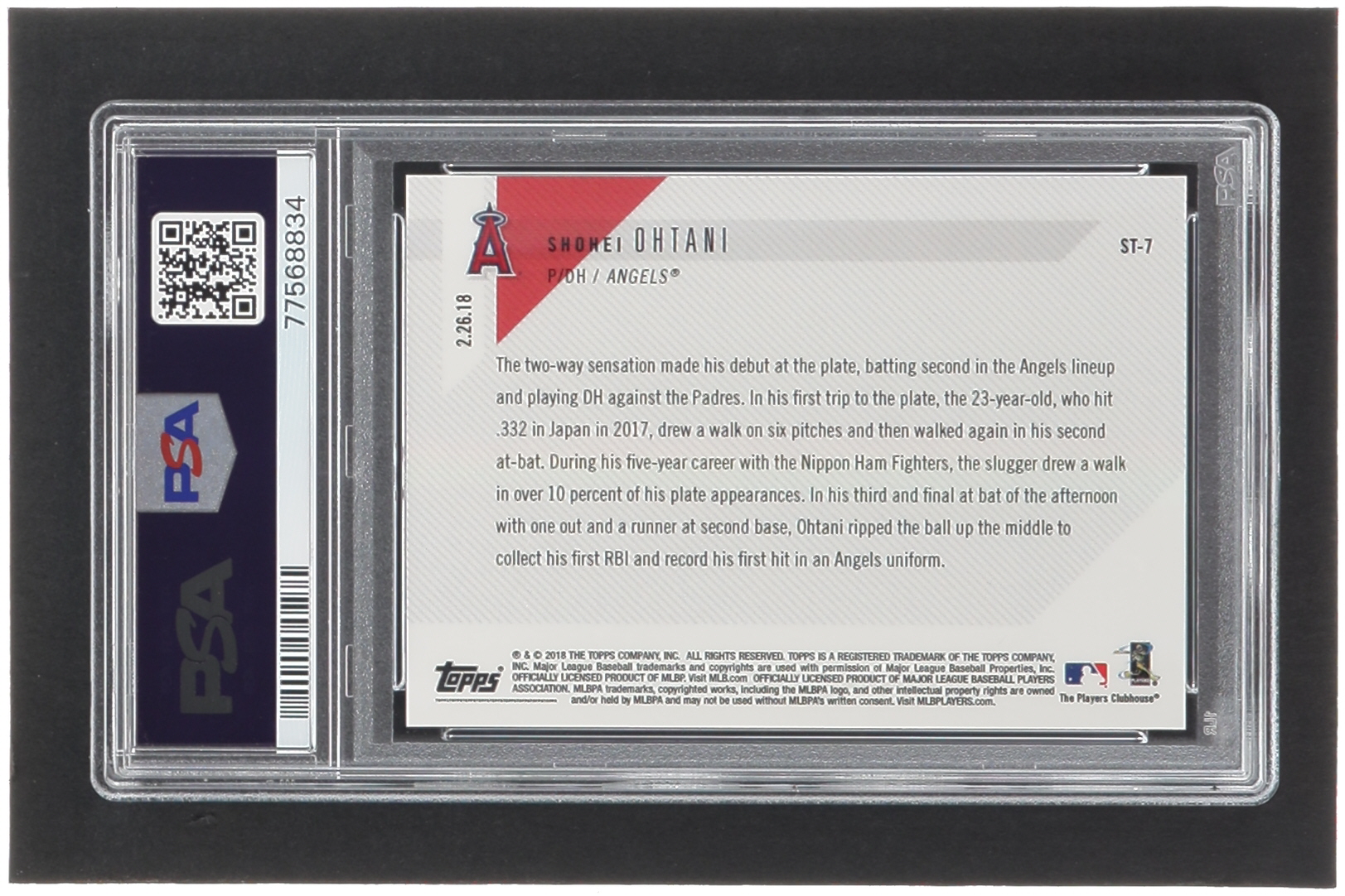 Shohei Ohtani 2018 Topps Now Spring Training #ST7 RC (PSA 10)