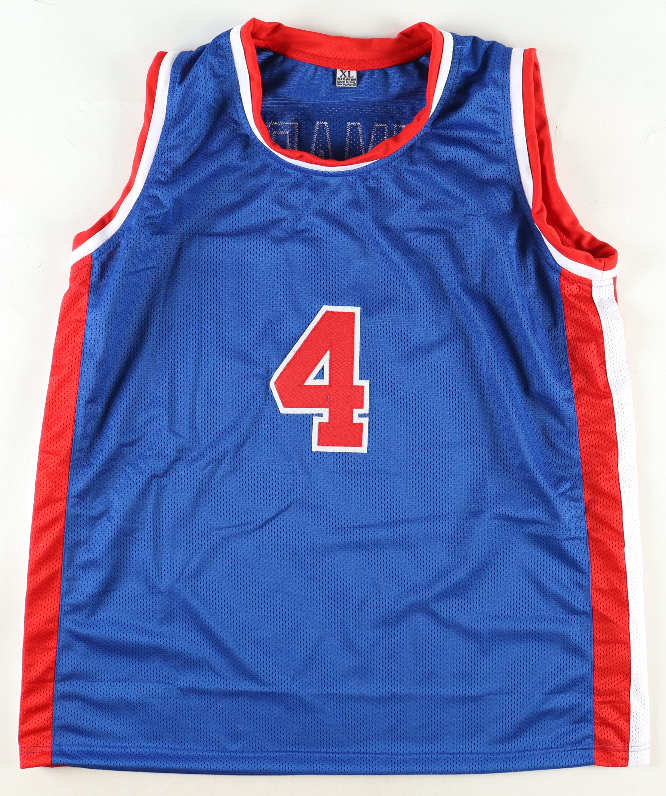 Custom style jersey with everything sewn on, size XL. Hand-signed by Joe Dumars (HOF).