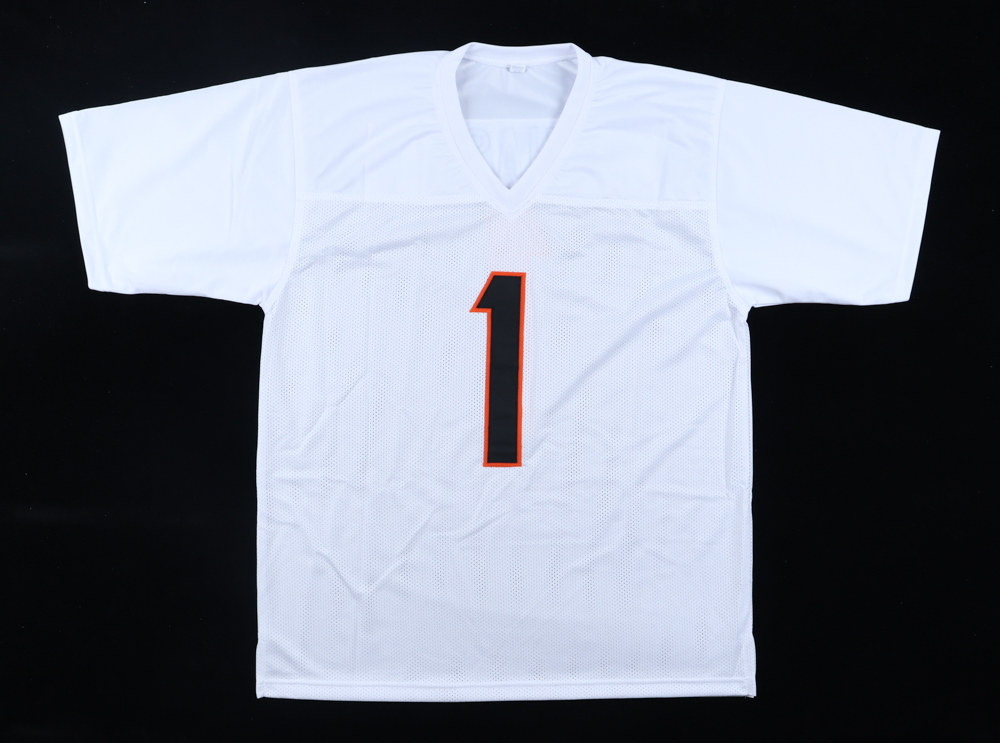 Custom jersey with everything sewn on, size XL. Hand-signed by Ja'Marr Chase.