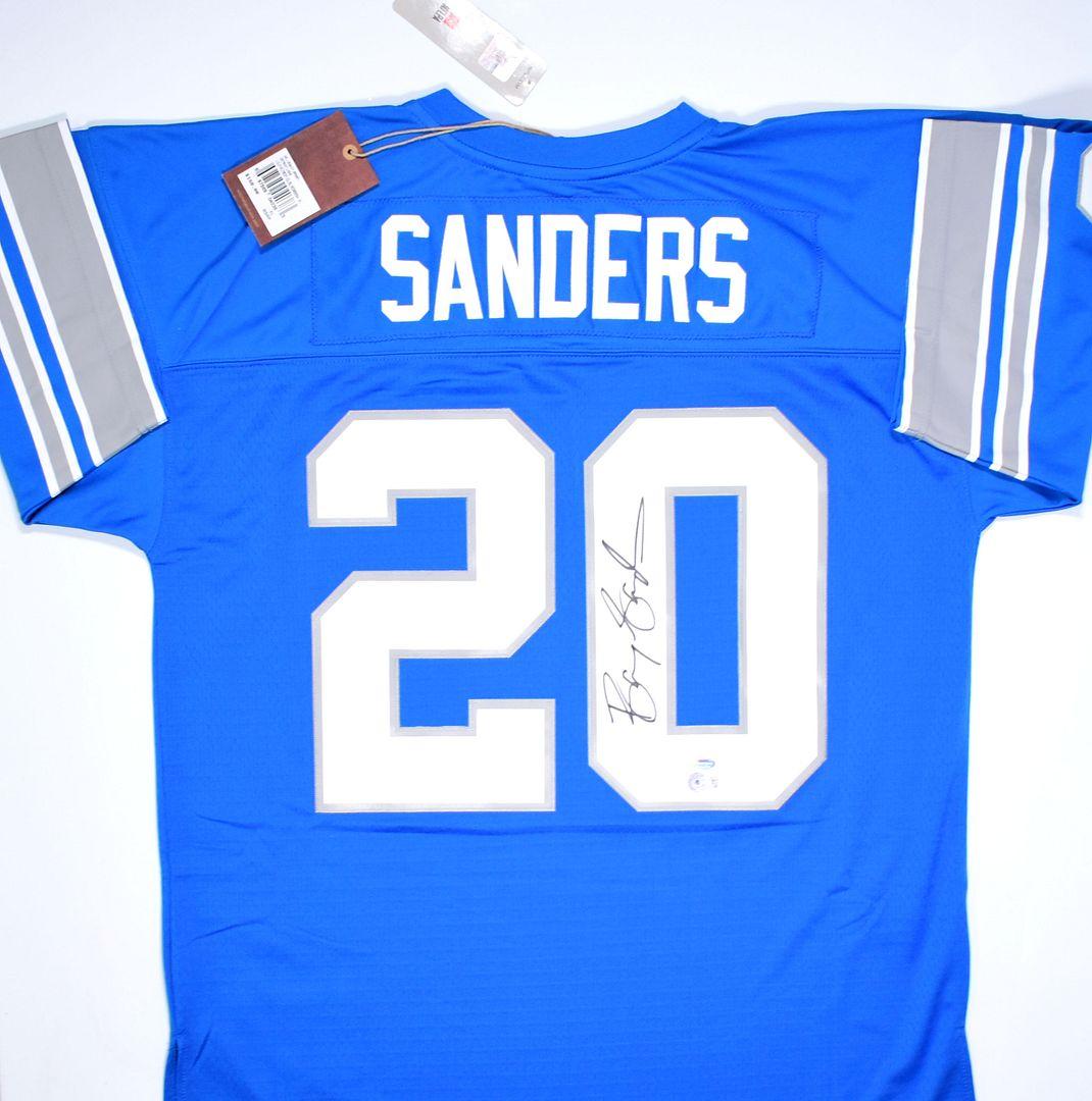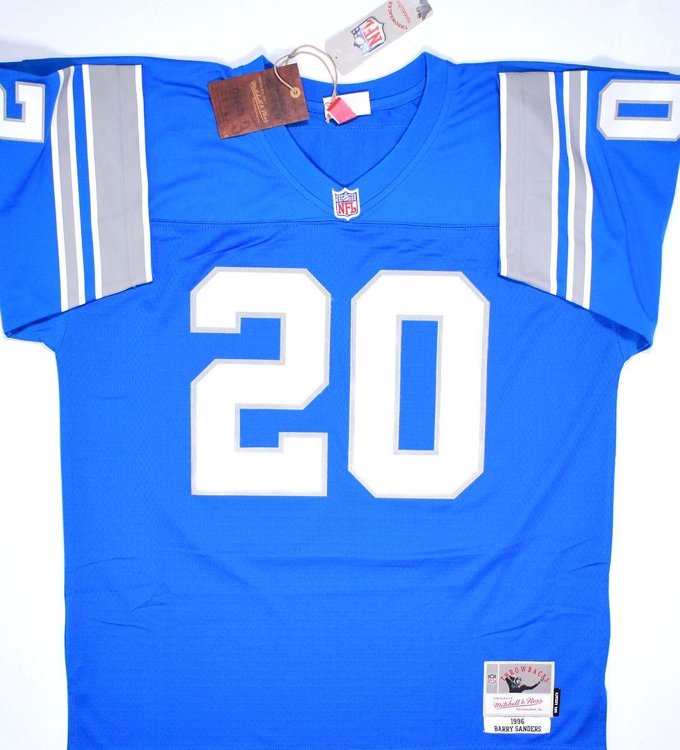 Mitchell & Ness jersey. Everything sewn on, size XL. Hand-signed by Barry Sanders (Detroit Lions, HOF).