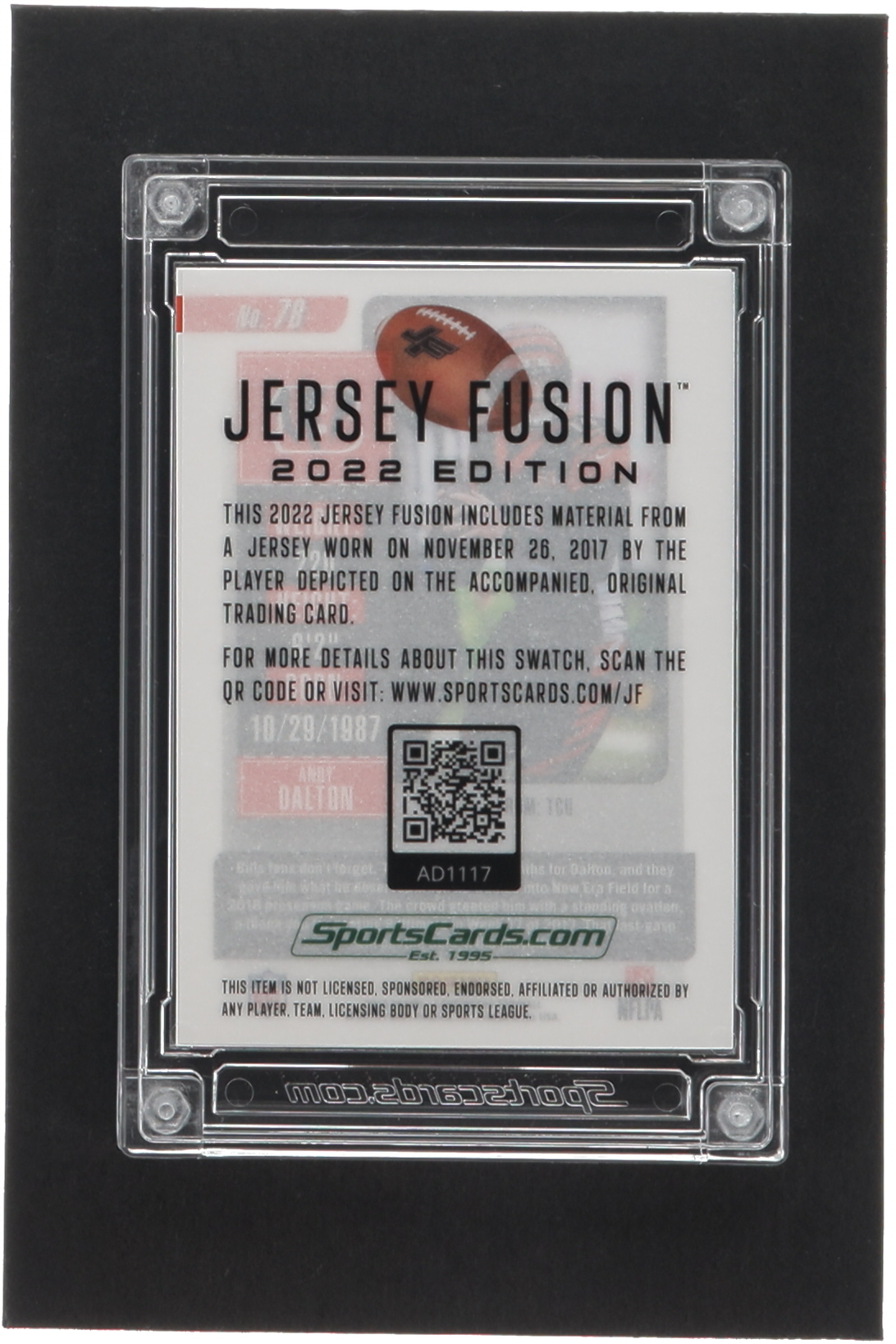 Andy Dalton 2022 Jersey Fusion Game Used Swatch #AD1117