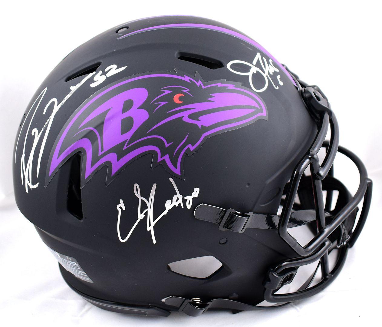 Ray Lewis, Ed Reed & Joe Flacco Signed Ravens Full-Size Authentic On-Field Eclipse Alternate Speed Helmet (Beckett)