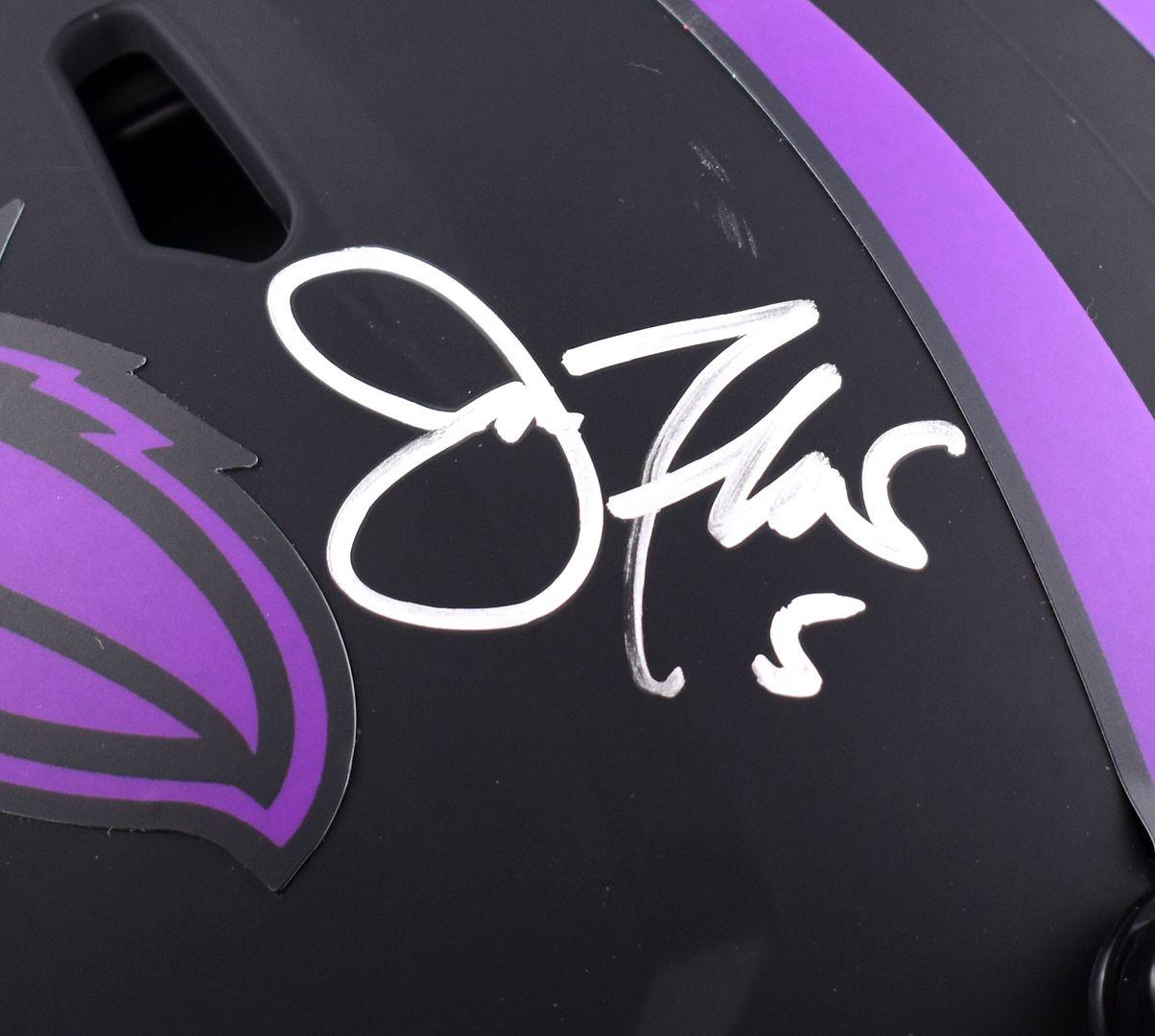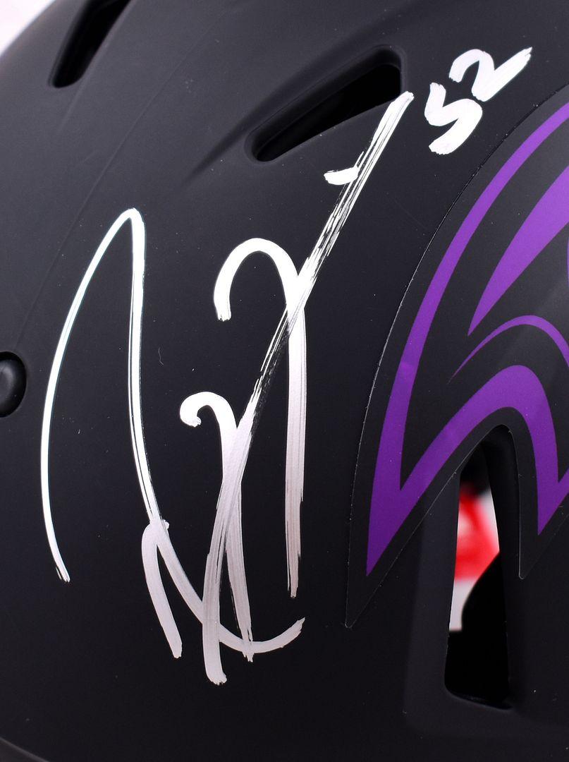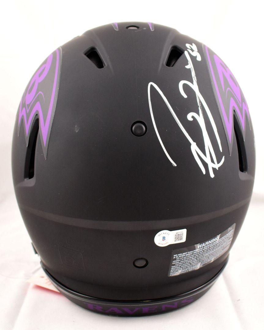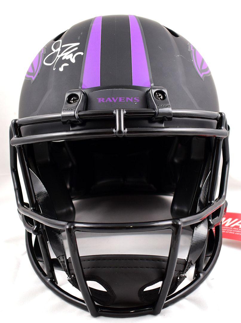 Riddell Baltimore Ravens full-size authentic on-field Eclipse Alternate Speed Helmet. Hand-signed by Ray Lewis (HOF), Ed Reed (HOF) and Joe Flacco.