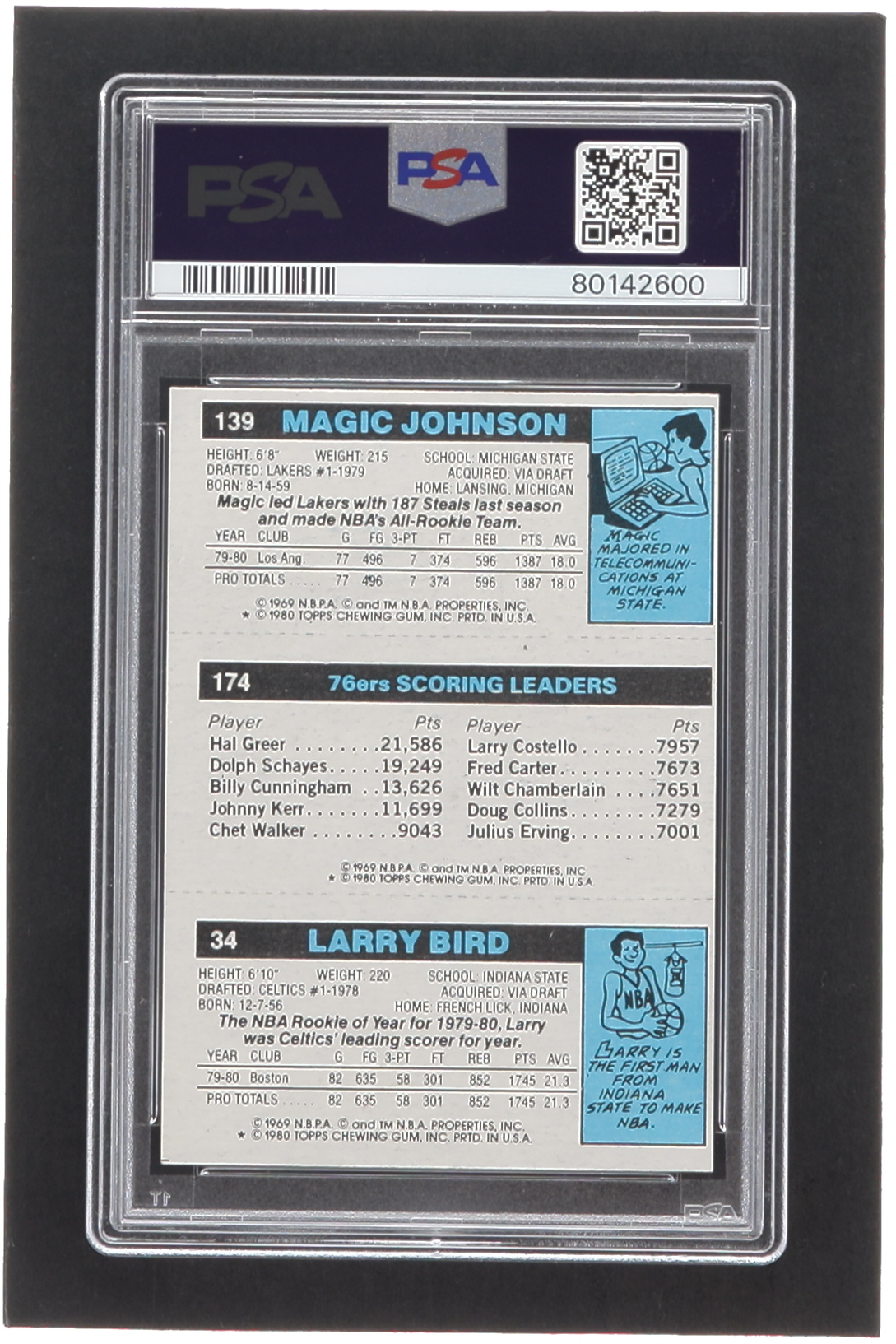 Larry Bird, Julius Erving & Magic Johnson Signed 1980-81 Topps #6 34 RC /174 TL / 139 RC (PSA 6 | Auto 10)