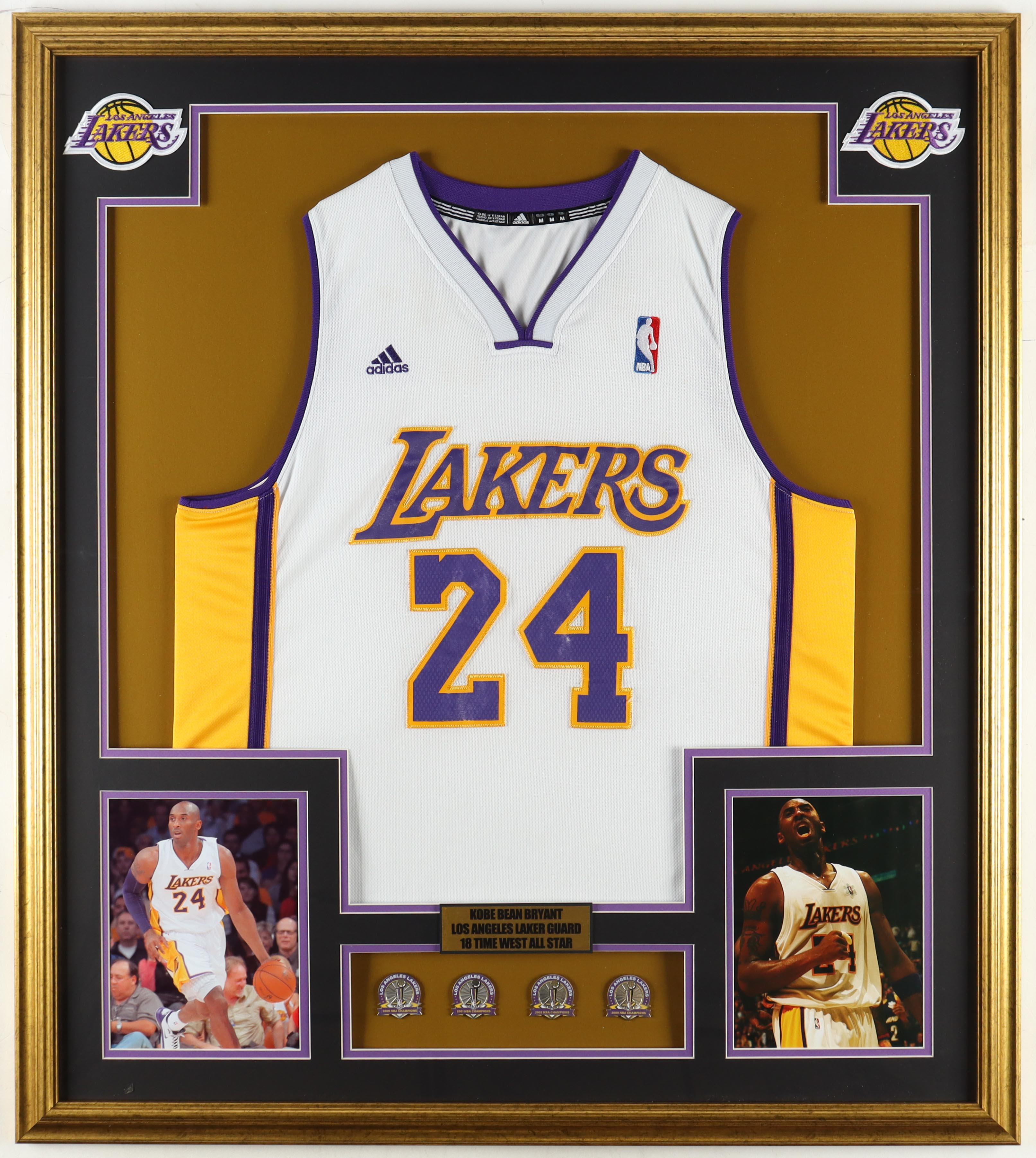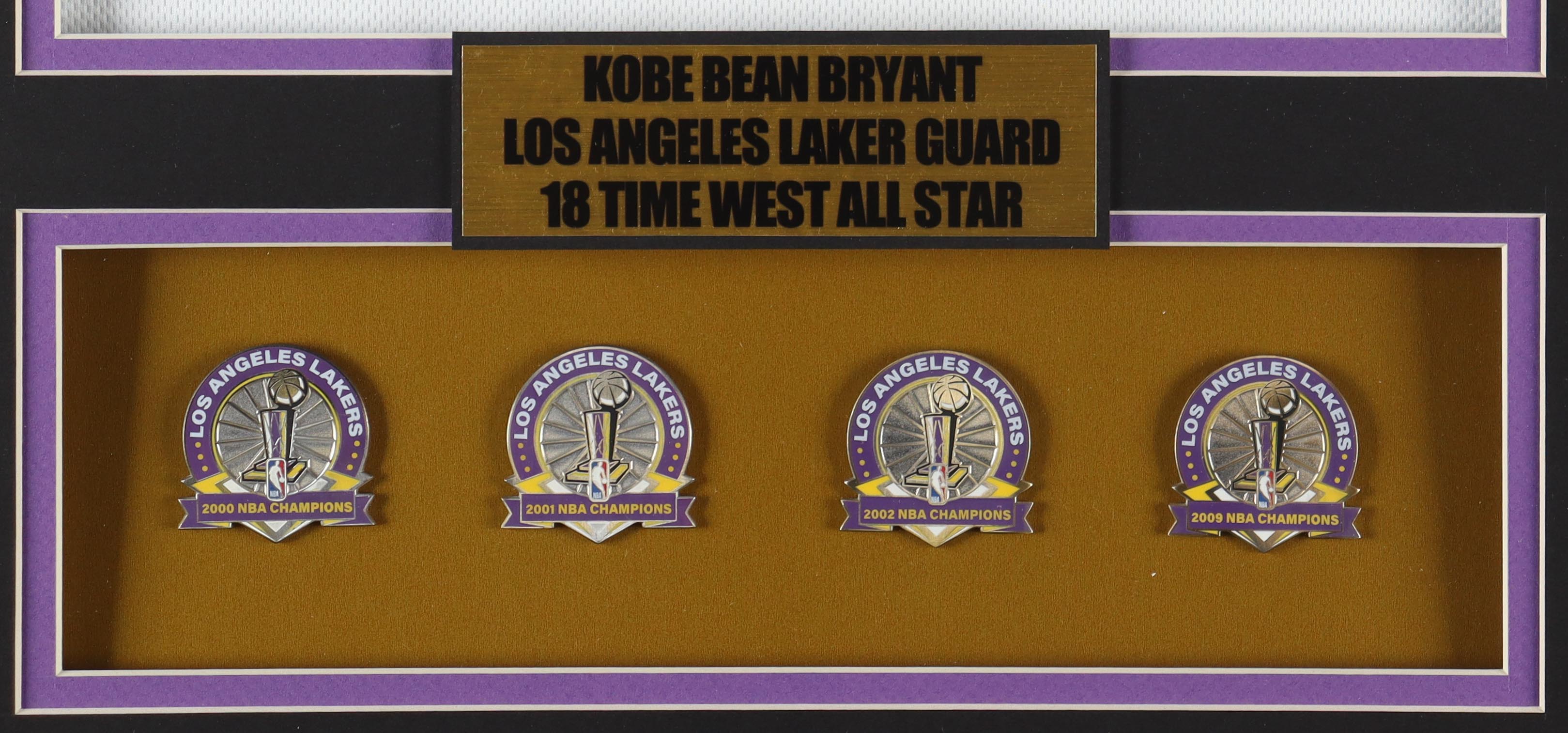 Kobe Bryant Custom Framed Jersey Display With (4) Official World Championship Pins
