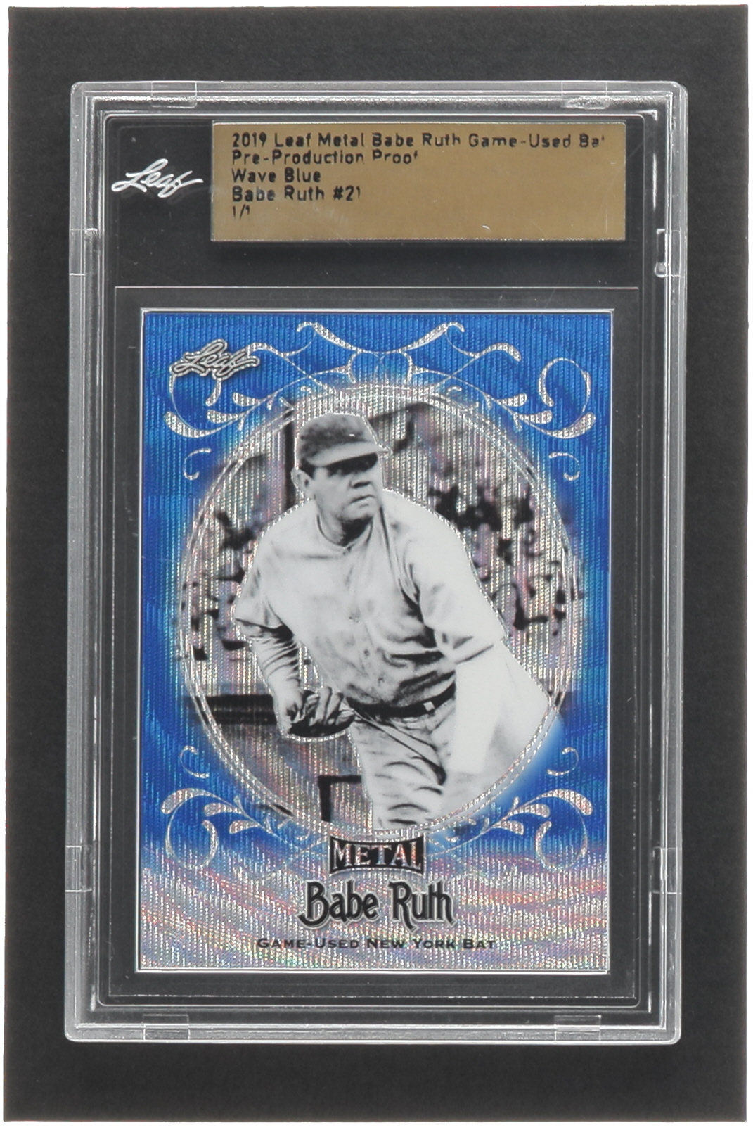 Babe Ruth 2019 Leaf Metal Babe Ruth Game Used Bat Pre-Production Proof Wave Blue #21 #1/1 (Leaf)