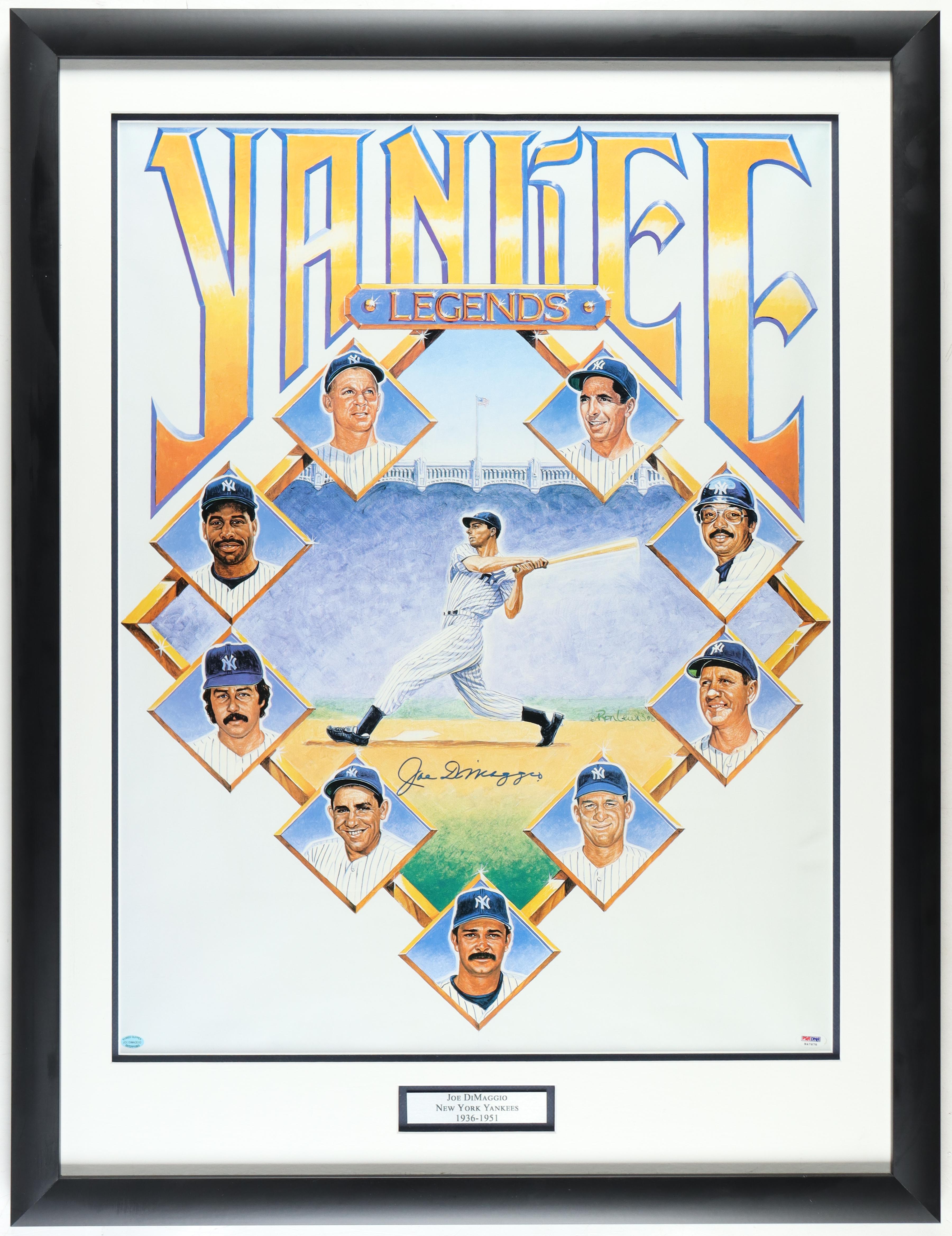 Joe DiMaggio Signed "Yankee Legends" Custom Framed Poster (PSA)