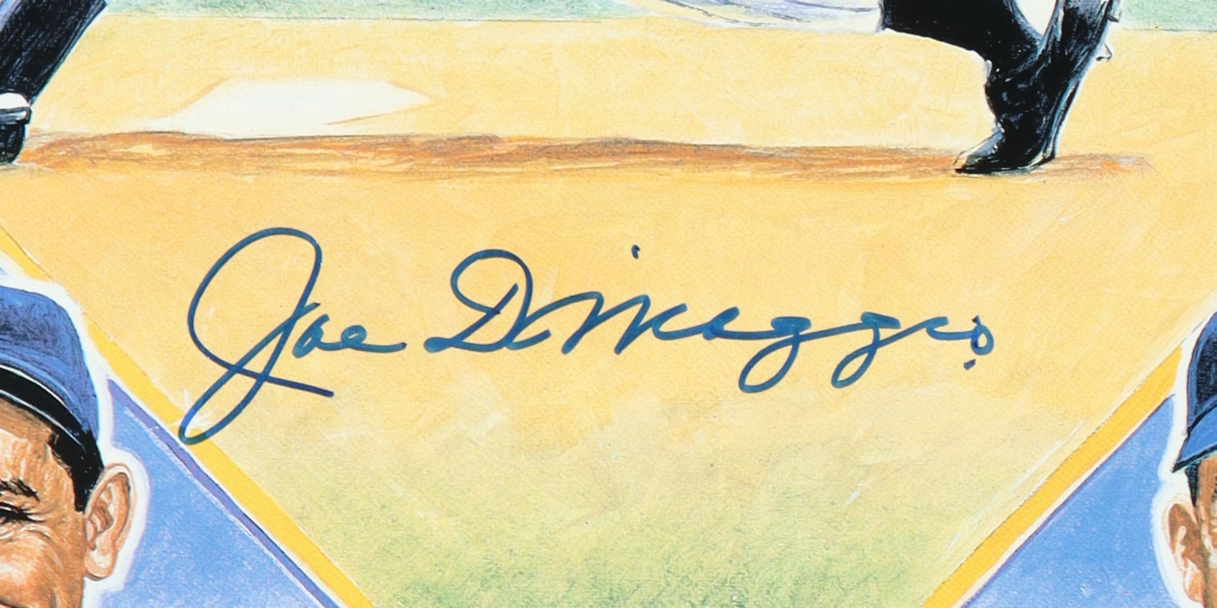 Custom frame measures 29.5" x 38.5" in size and features a poster that has been hand-signed by Joe DiMaggio (D. 1999, New York Yankees, HOF).