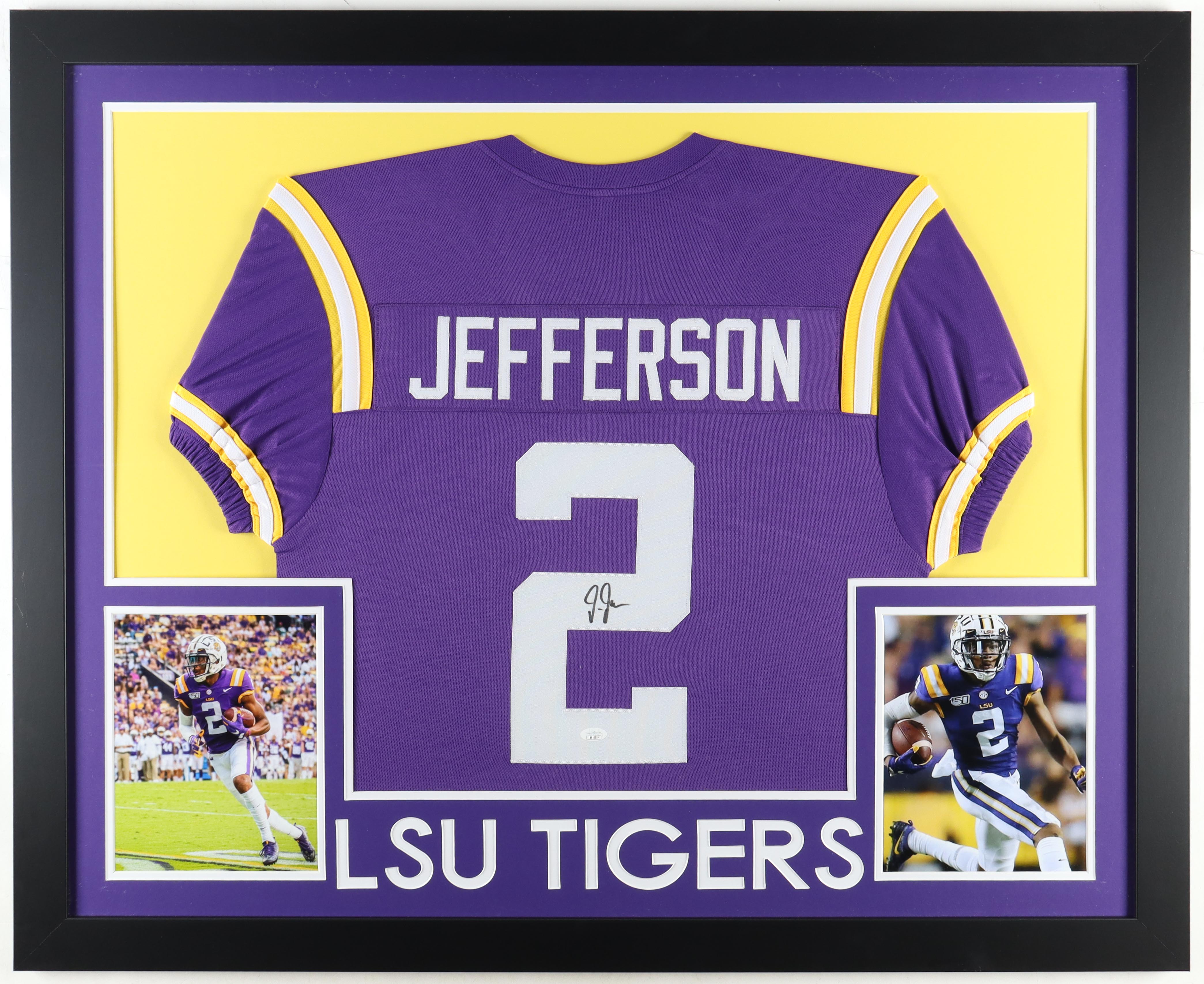 Custom frame measures approximately 35" x 43" in size. Features a jersey hand-signed by Justin Jefferson.