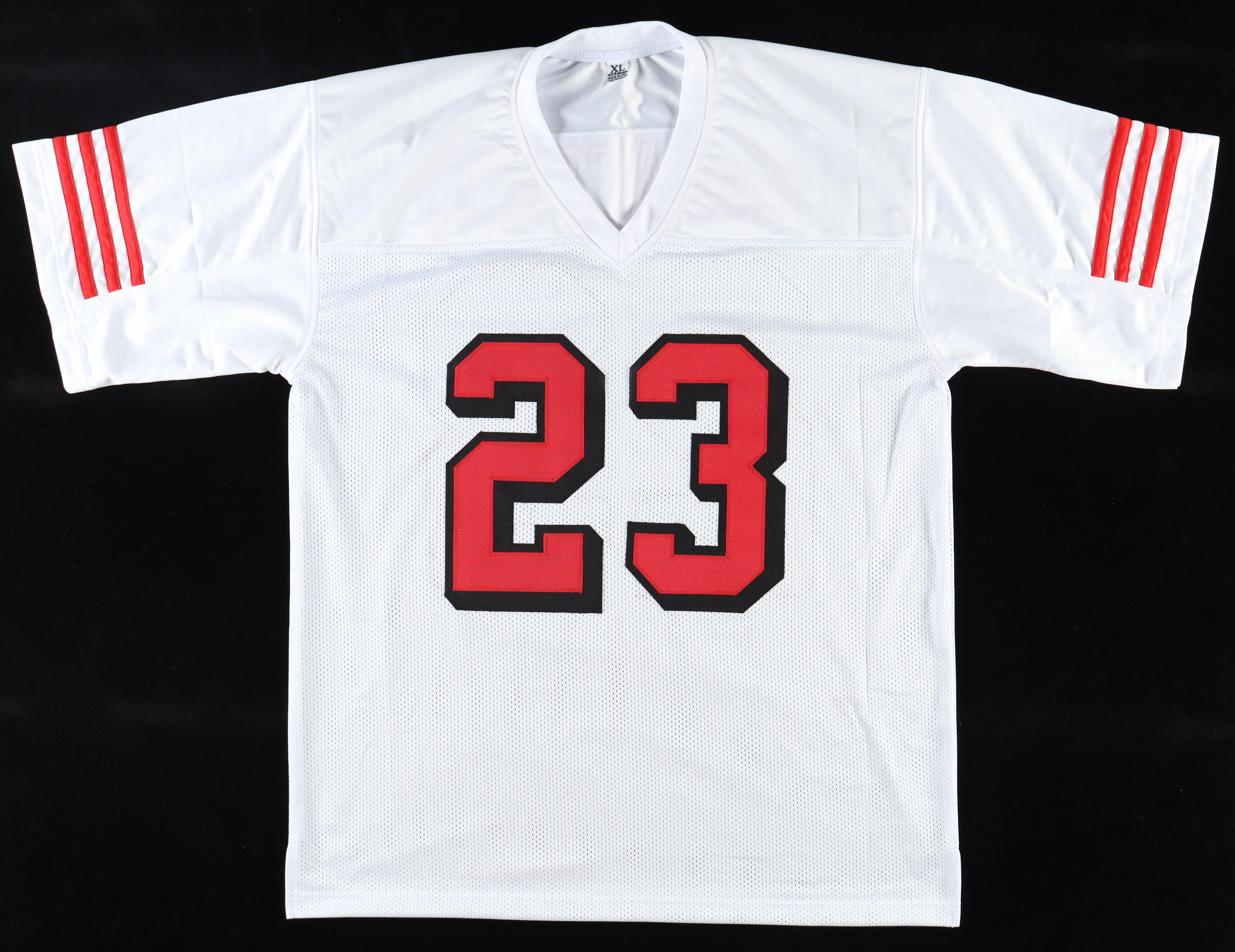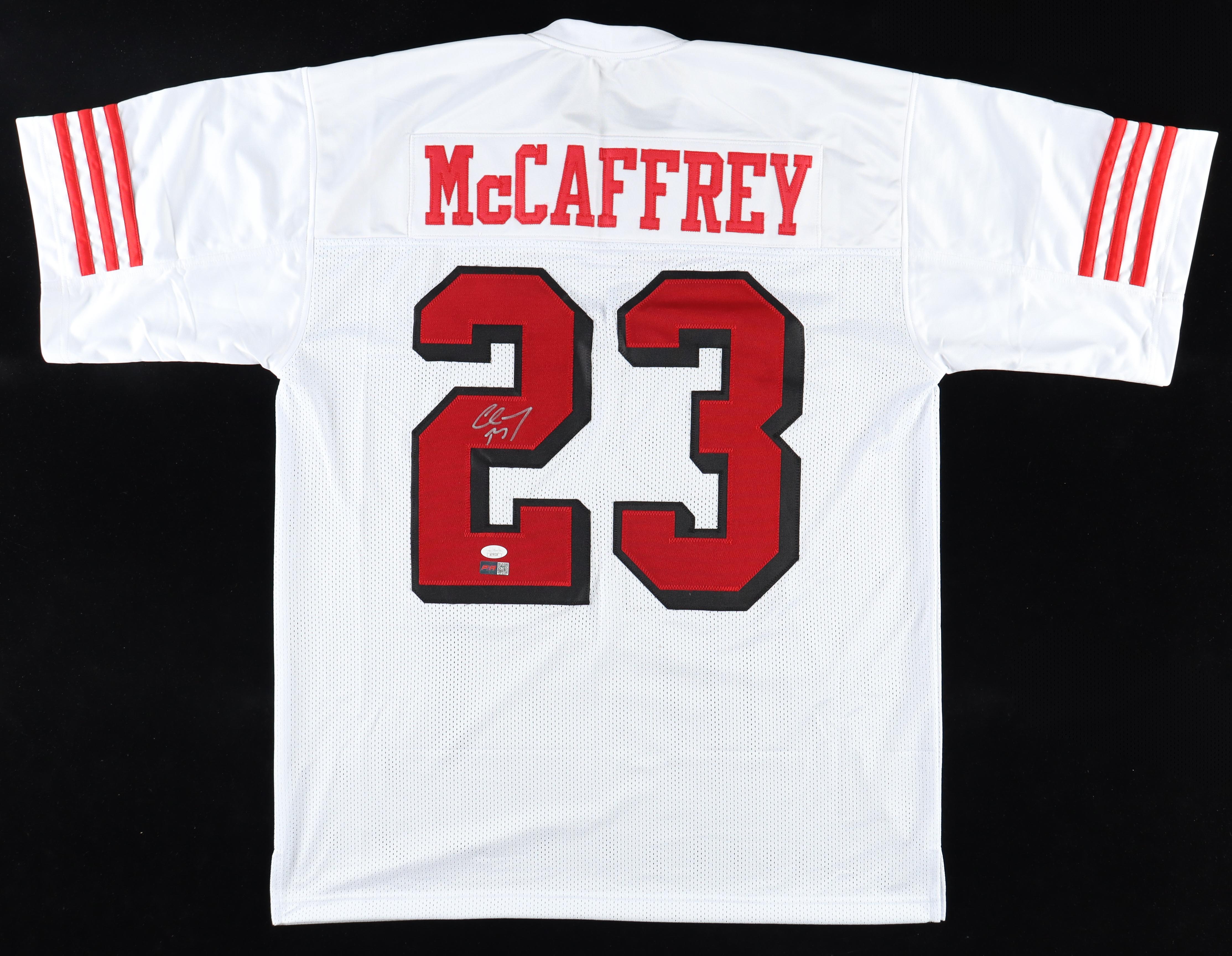 Custom jersey with everything printed on, size L. Hand-signed by Christian McCaffrey (San Francisco 49ers).