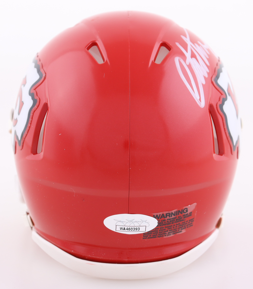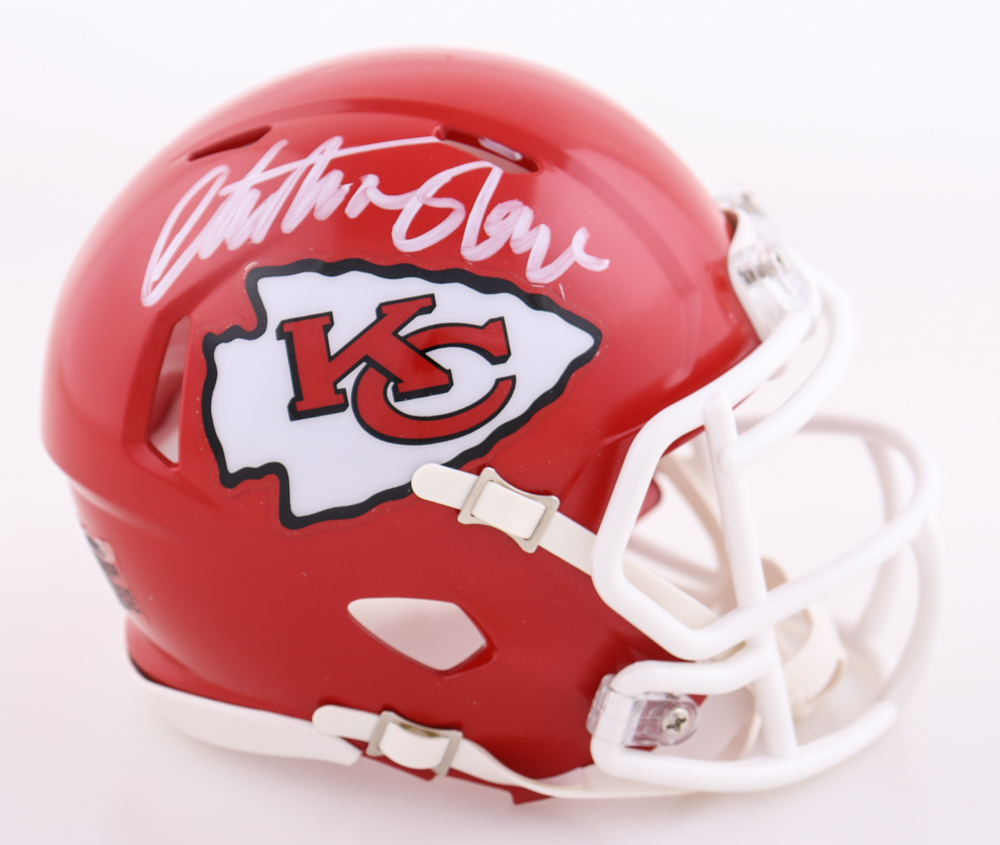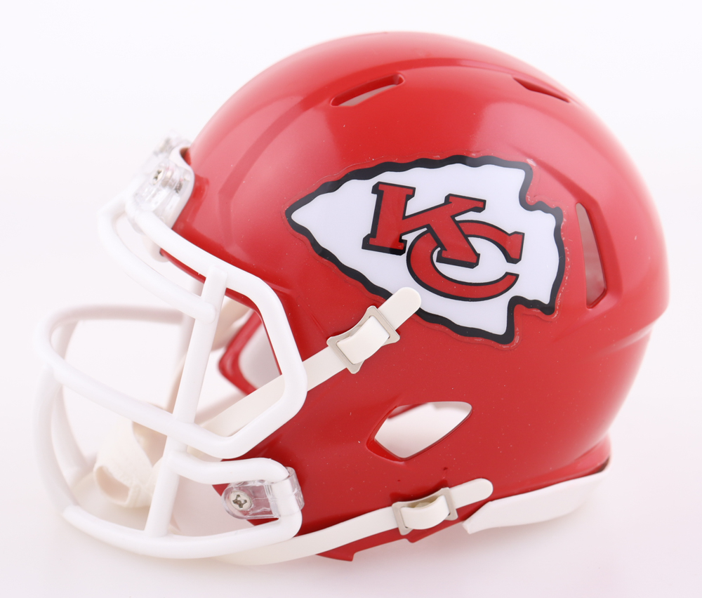 Riddell Kansas City Chiefs speed mini helmet. Has been hand-signed by Christian Okoye.