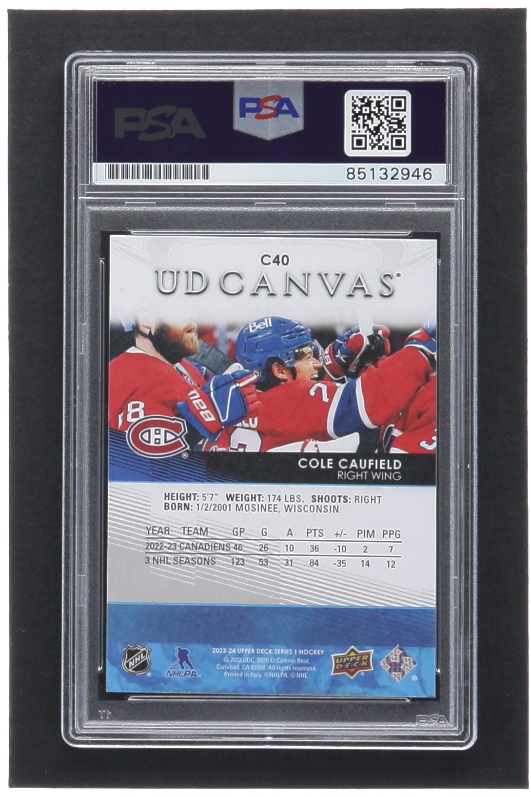 Cole Caufield Signed 2023-24 Upper Deck UD Canvas #C40 (PSA)