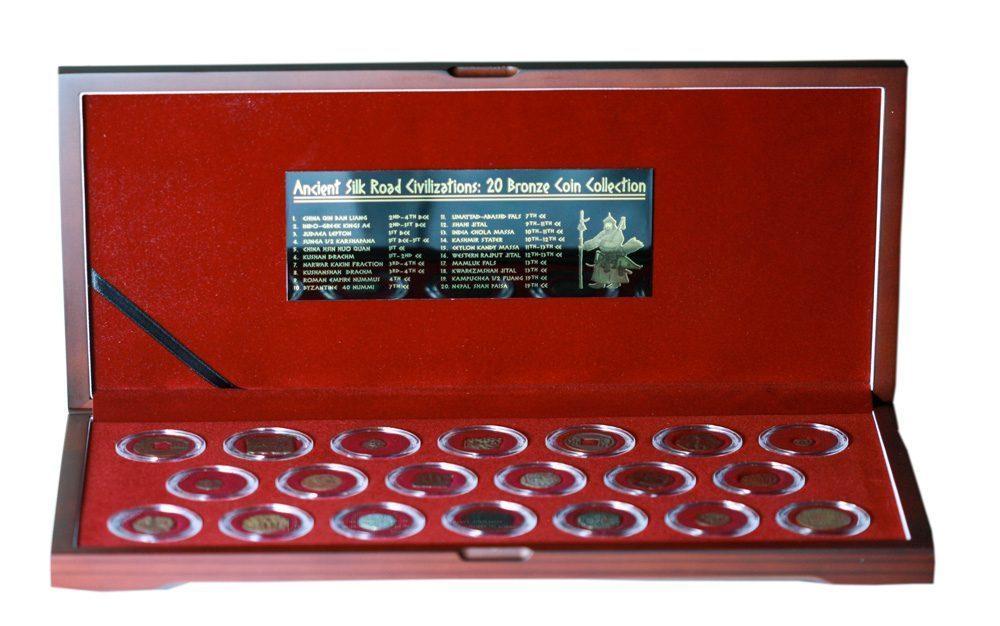 Set of (20) Ancient Coins of the Silk Road Coins with Deluxe Wooden Display Box