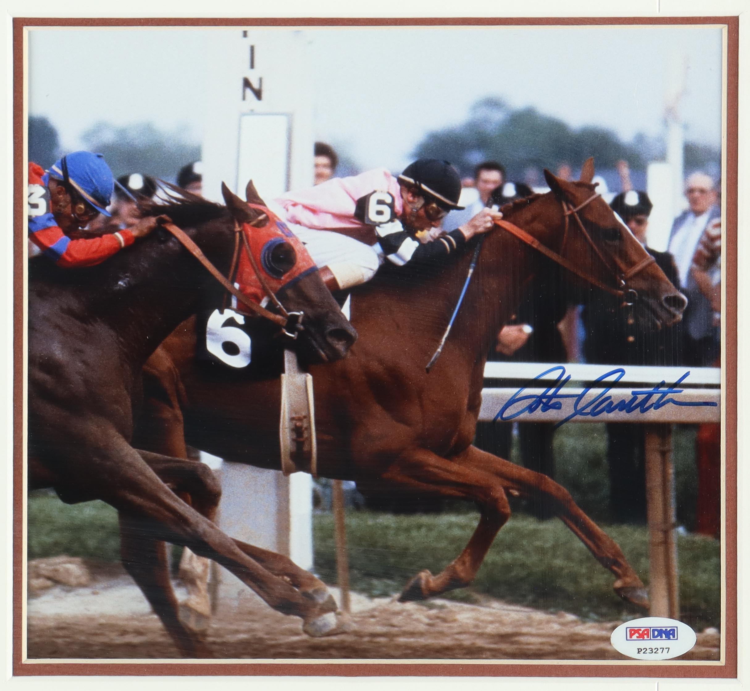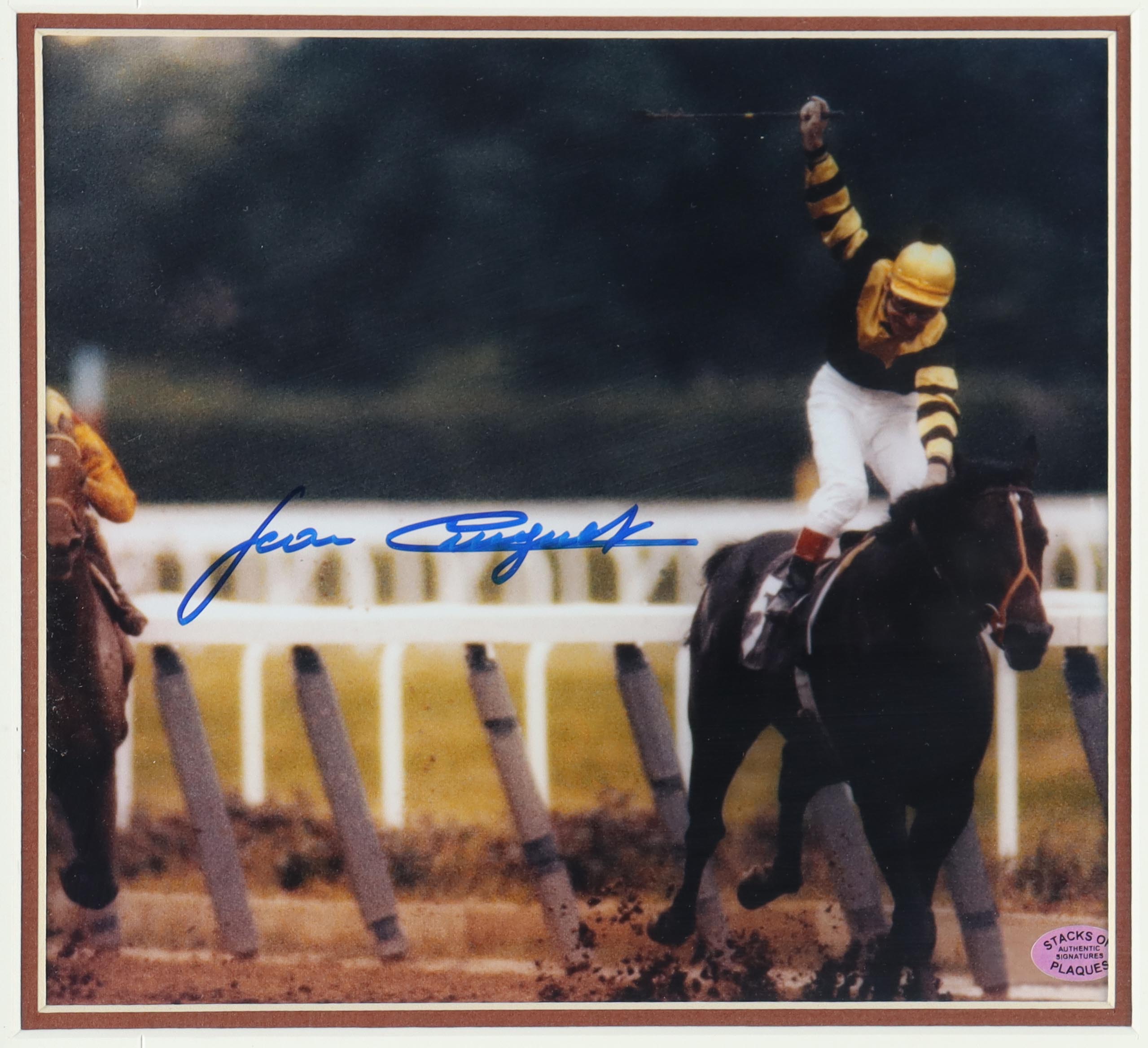 Custom framed matted display measures approximately 21" x 33" in size and features (3) 8" x 10" photos that have been hand-signed by Jean Cruguet, Ron Turcotte, and Steve Cauthen.