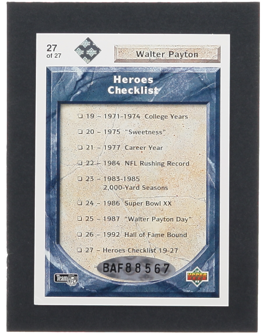 Walter Payton Signed LE 1992 Upper Deck Heroes #27 Checklist Heroes 19-27 (UDA)
