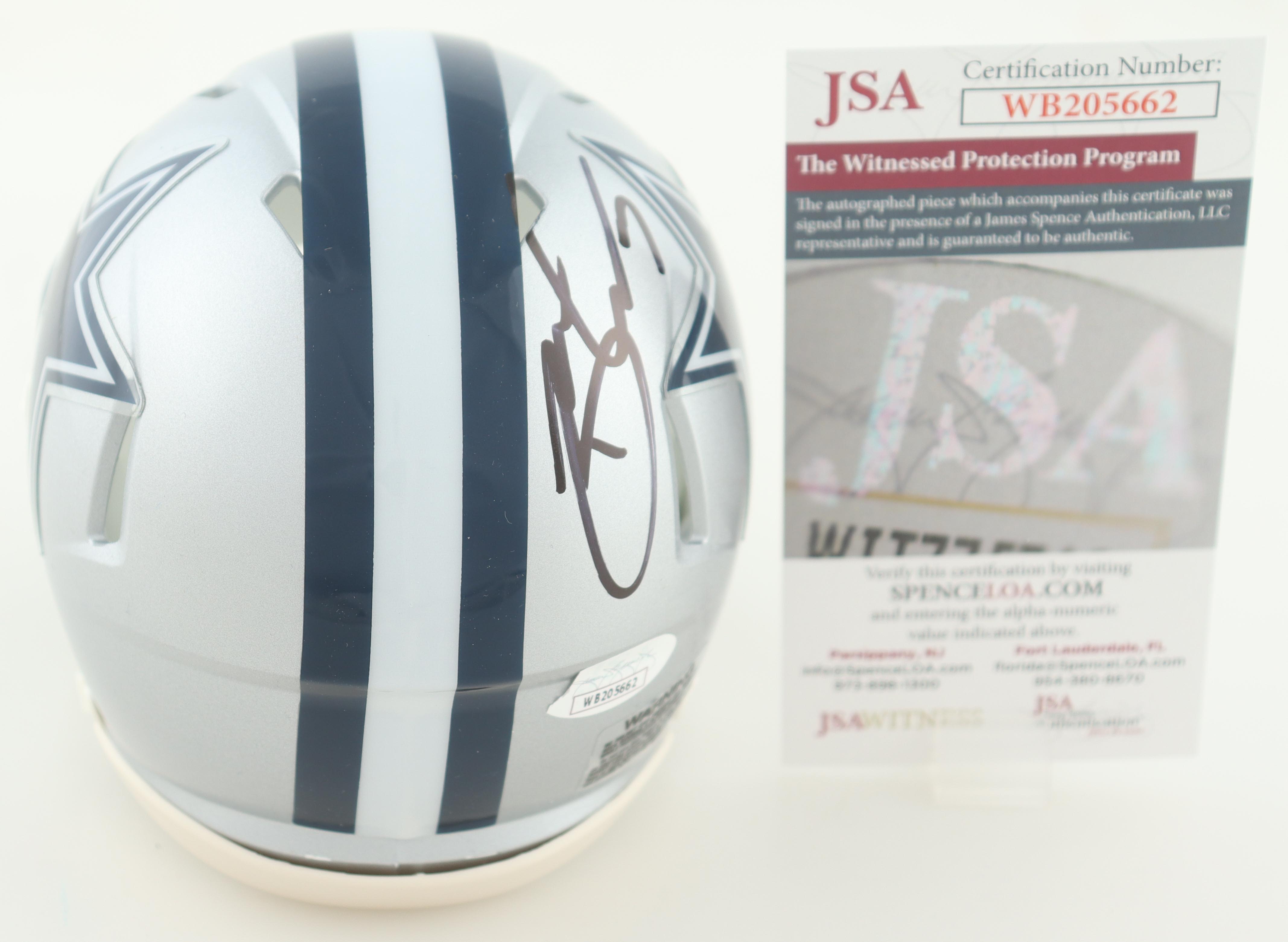 Riddell Dallas Cowboys speed mini helmet. Hand-signed by Brandin Cooks. Please note, the hologram is torn. See photos for more details.