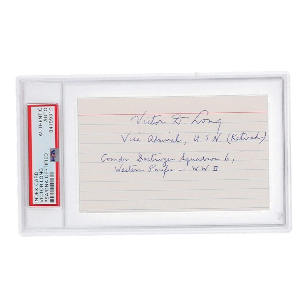 Victor D. Long Signed Index Card with Service Record Inscription (PSA)
