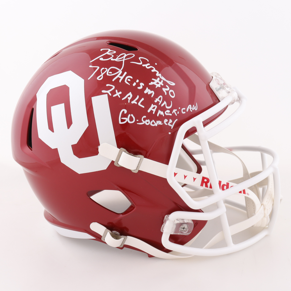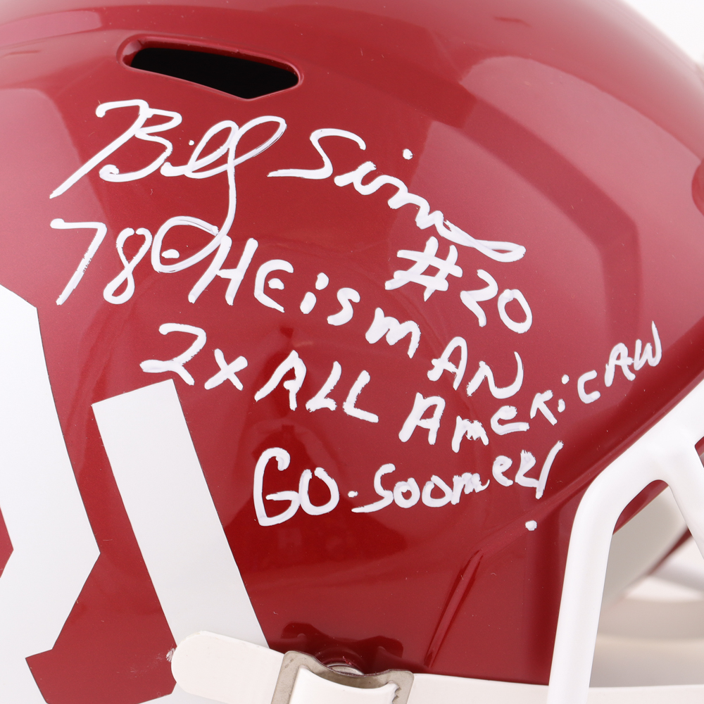 Billy Sims Signed Oklahoma Sooners Full-Size Speed Helmet Inscribed "78 Heisman", "2X All American" & "Go Sooners!" (Beckett)
