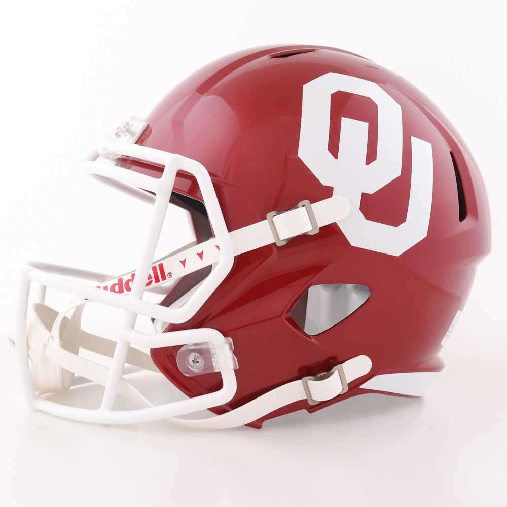 Riddell Oklahoma Sooners full-size replica speed helmet. Hand-signed and inscribed by Billy Sims.