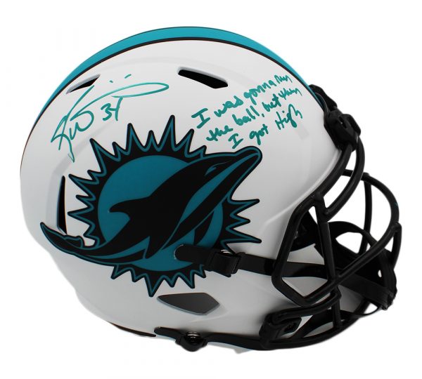 Riddell Miami Dolphins full-size Lunar Eclipse Alternate Speed helmet. Hand-signed and inscribed by Ricky Williams.