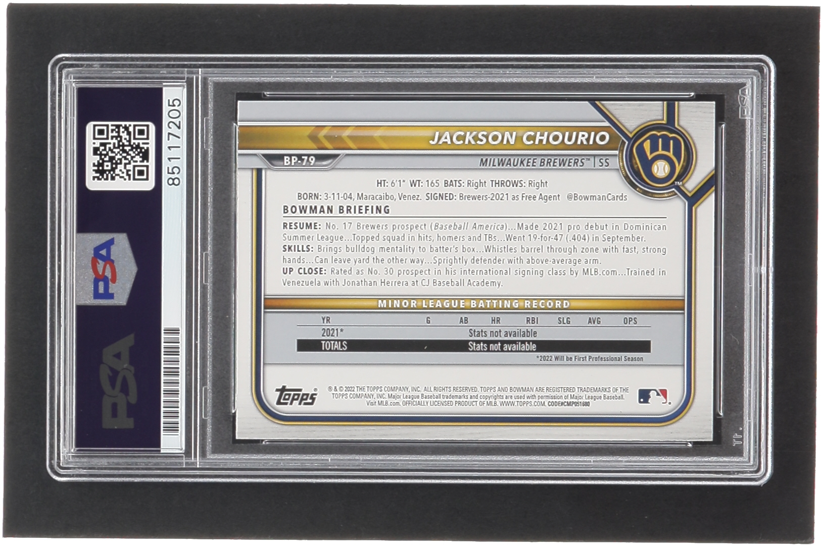 Jackson Chourio Signed 2022 Bowman Prospects #BP79 (PSA)