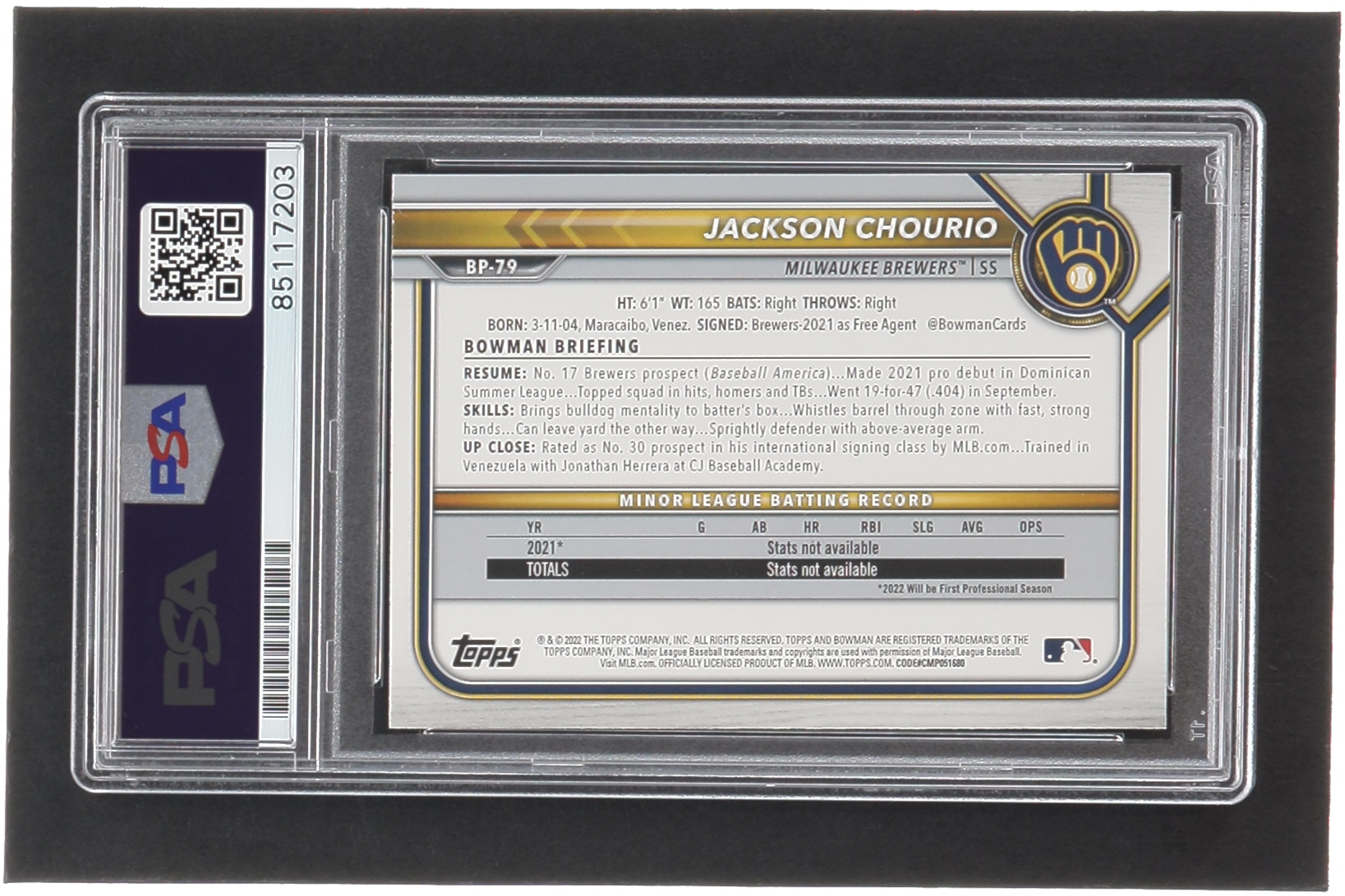 Jackson Chourio Signed 2022 Bowman Prospects #BP79 (PSA)
