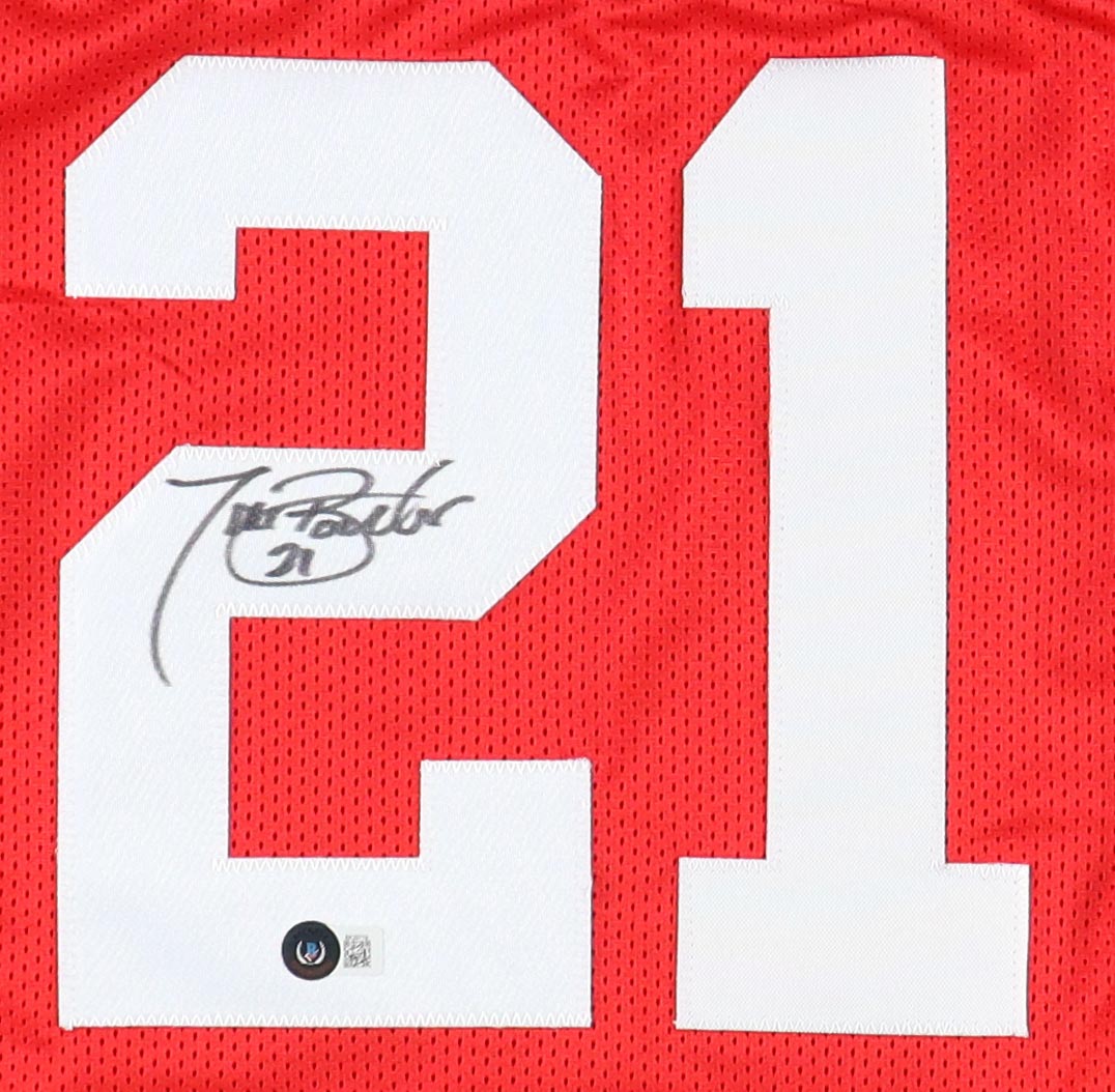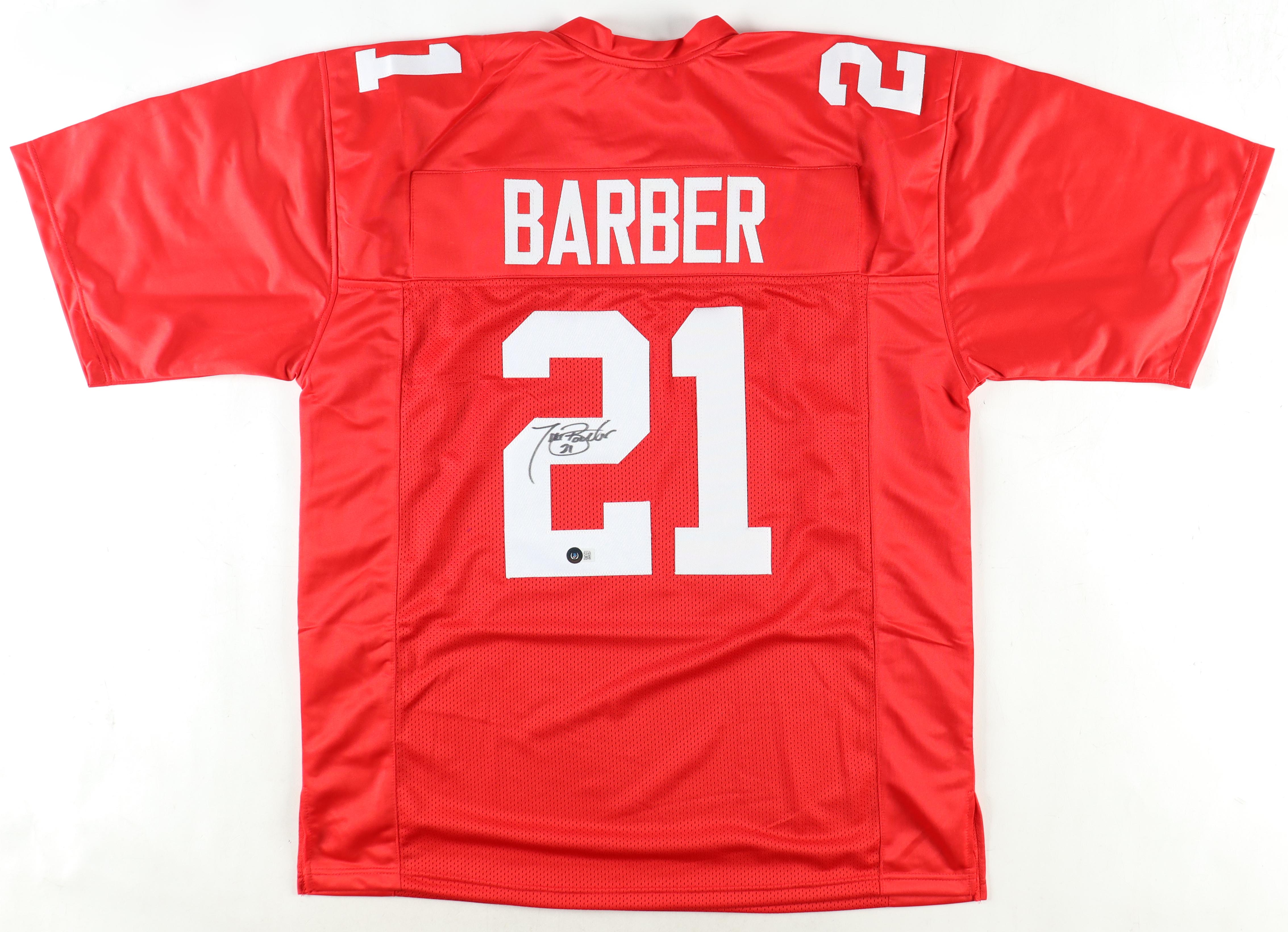 Custom jersey. Everything is sewn on, size XL. Hand-signed by Tiki Barber.