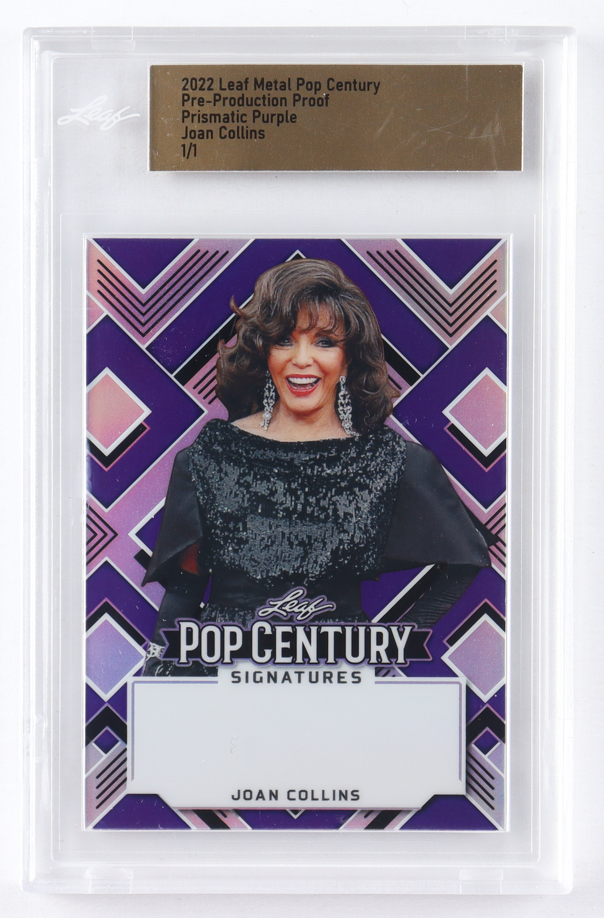 Joan Collins 2022 Leaf Metal Pop Century Pre-Production Proof Prismatic Purple #1/1 (Leaf)