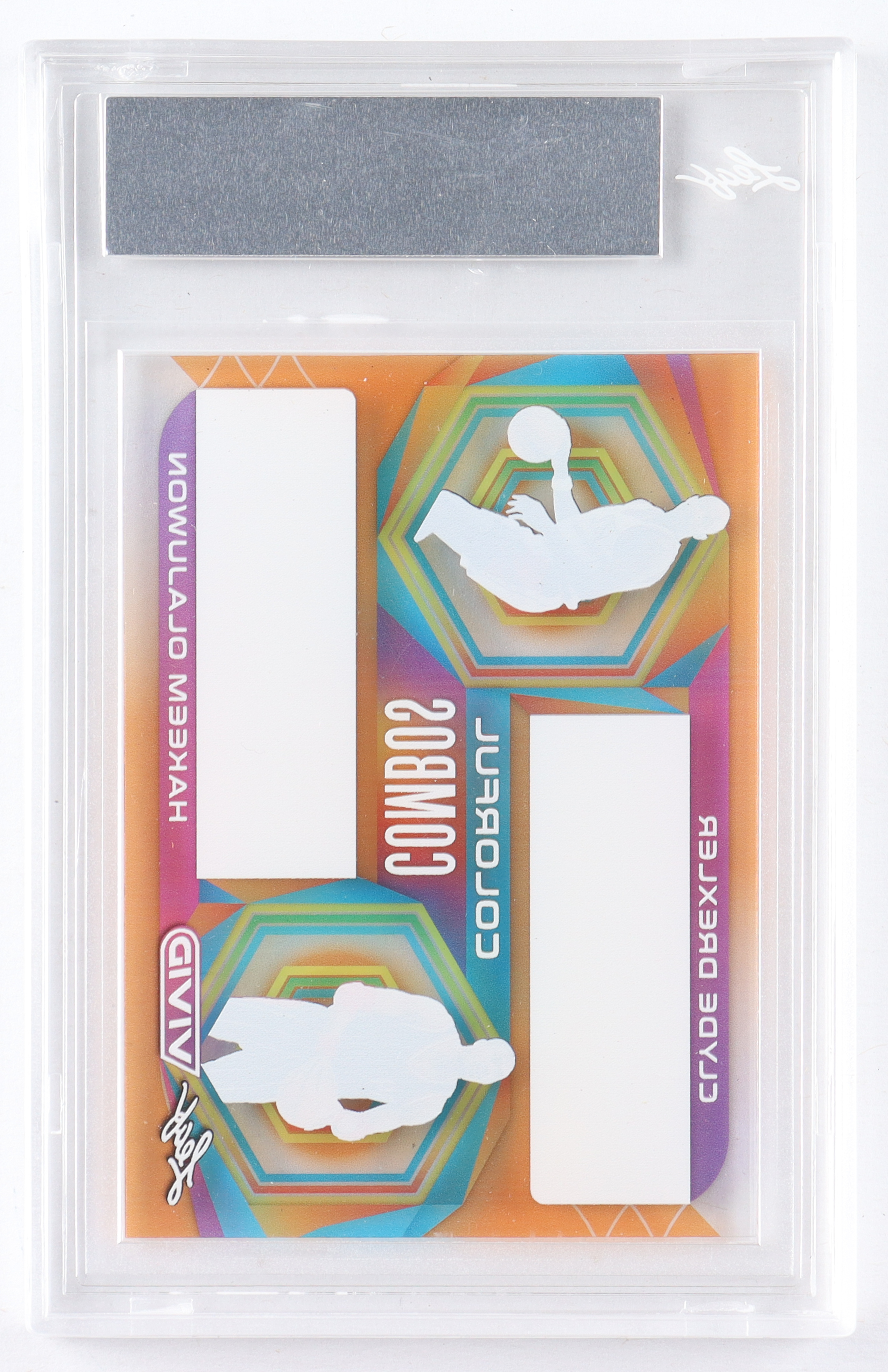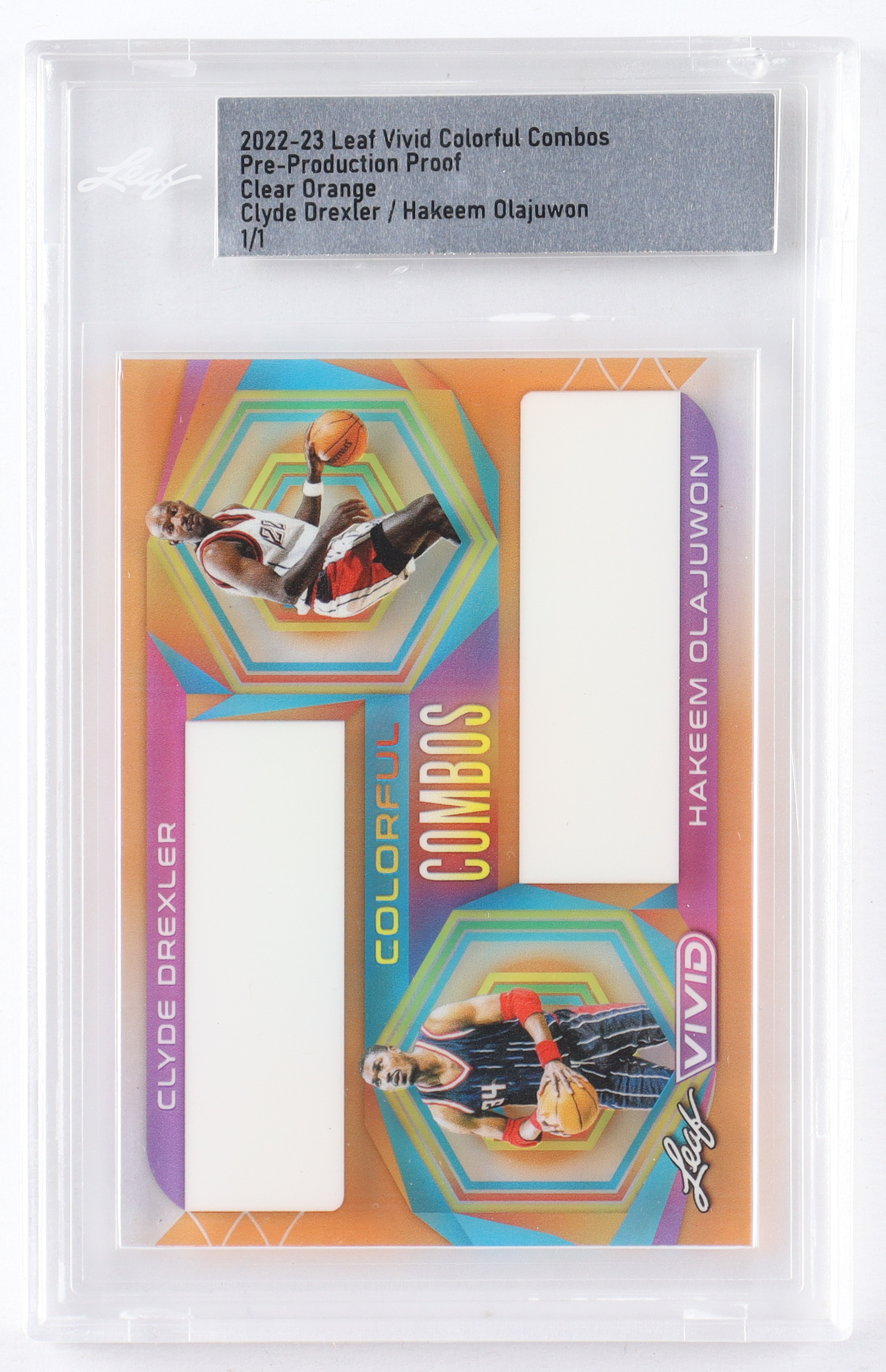 Clyde Drexler / Hakeem Olajuwon 2022 Leaf Vivid Colorful Combos Pre-Production Proof Clear Orange #1/1 (Leaf)