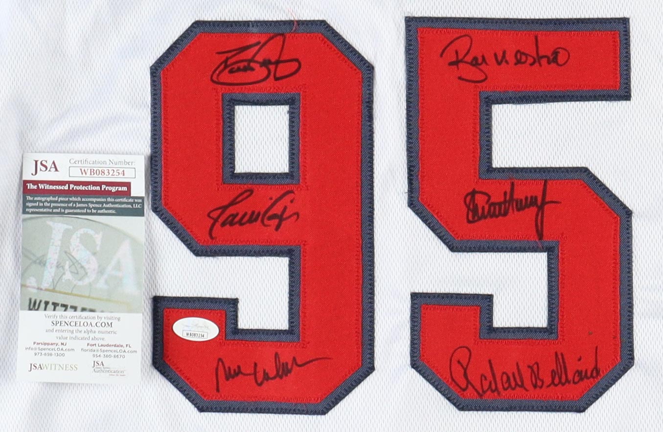 "1995 World Series Champions" Jersey Signed by (6) With Ryan Klesko, Steve Avery, Rafael Belliard, Javier Lopez (JSA)
