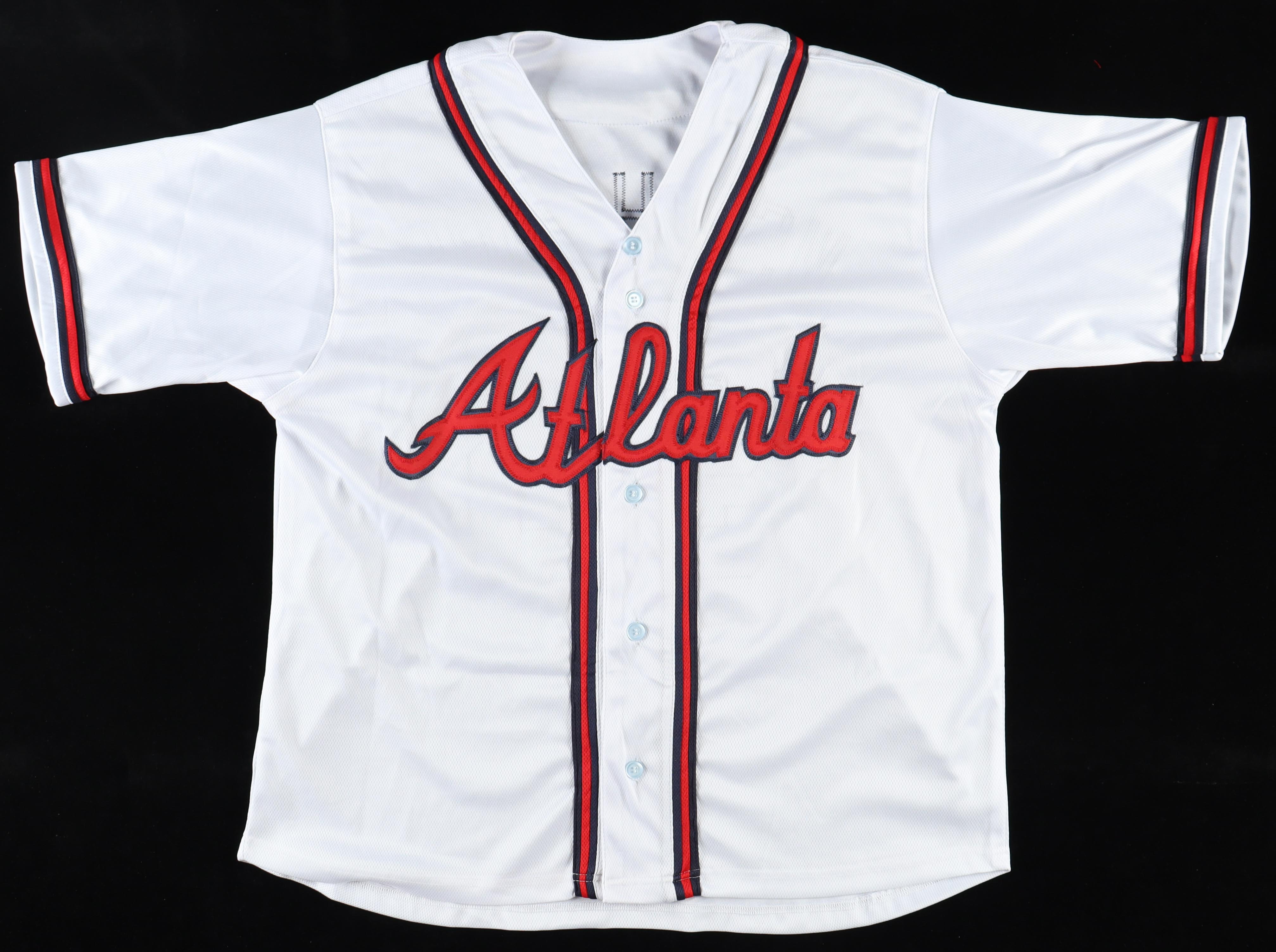 Custom jersey. Everything is sewn on, size XL. Hand-signed by (6) including Ryan Klesko, Steve Avery, Rafael Belliard, Javier Lopez, Mark Wohlers, and David Justice.