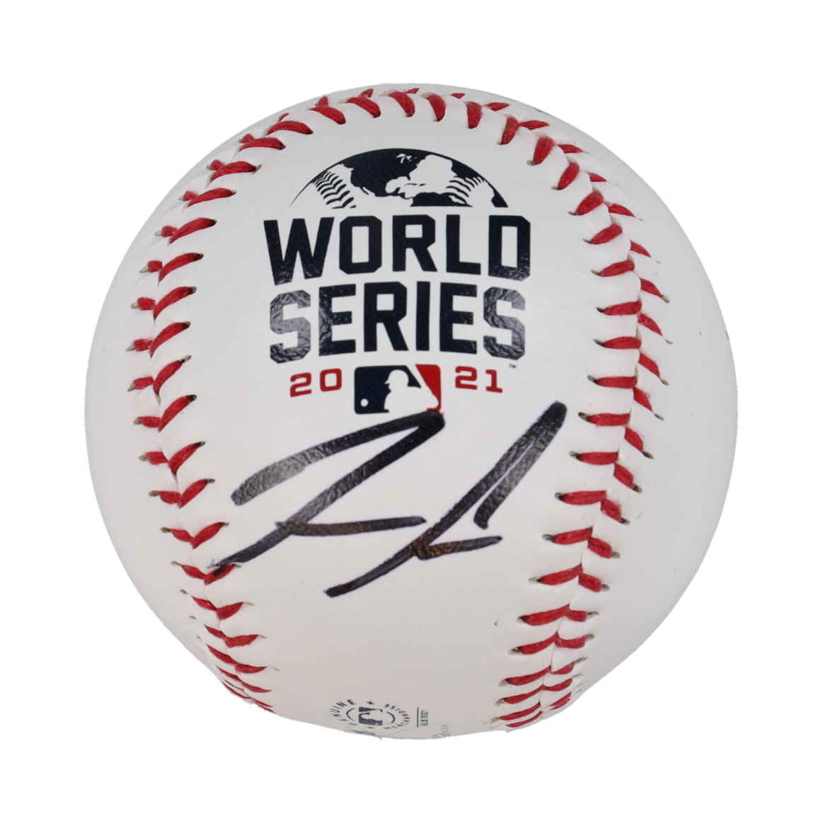 Rawlings Official 2021 World Series baseball. Hand-signed by Ronald Acuna Jr. (Atlanta Braves).