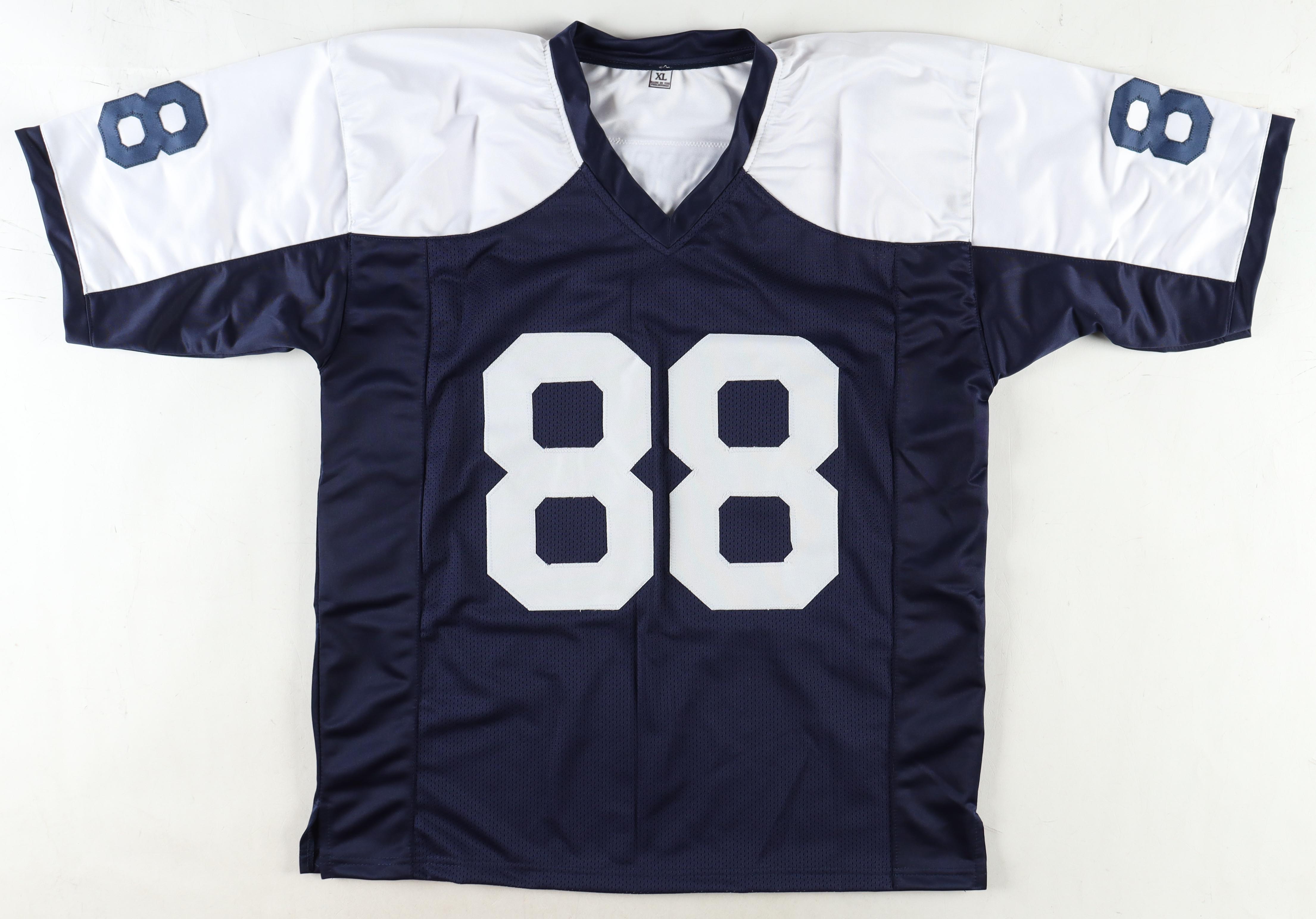 Custom on-field style jersey. Everything is sewn on, size XL. Hand-signed by Michael Irvin (HOF).