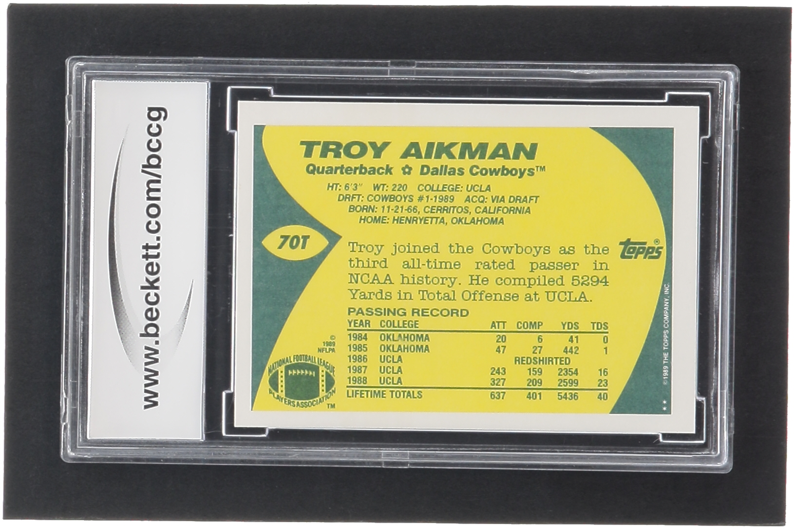 Troy Aikman 1989 Topps Traded #70T RC (BCCG 10)