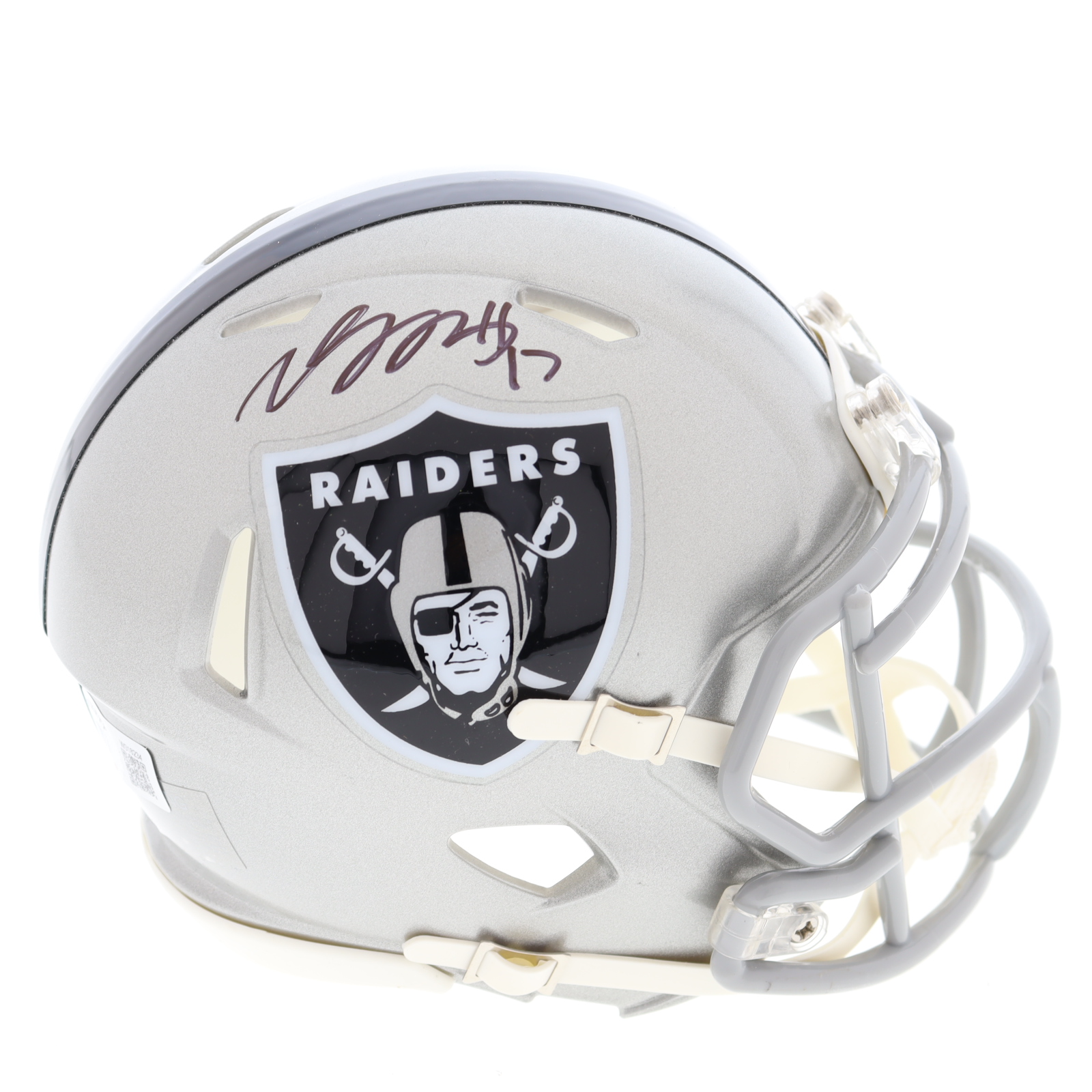 Riddell Las Vegas Raiders Flash Alternate Speed mini helmet. Hand-signed by Davante Adams.