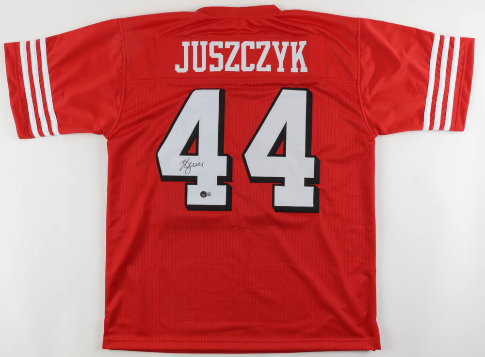 Custom jersey. Everything sewn on, size XL. Hand-signed by Kyle Juszczyk.