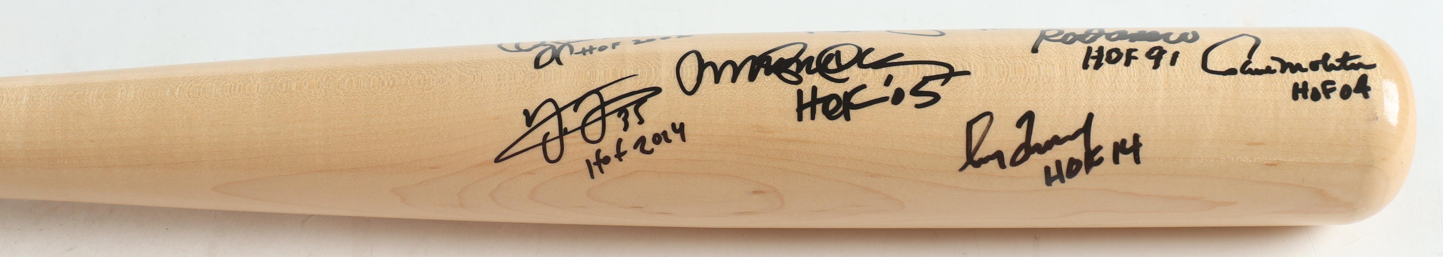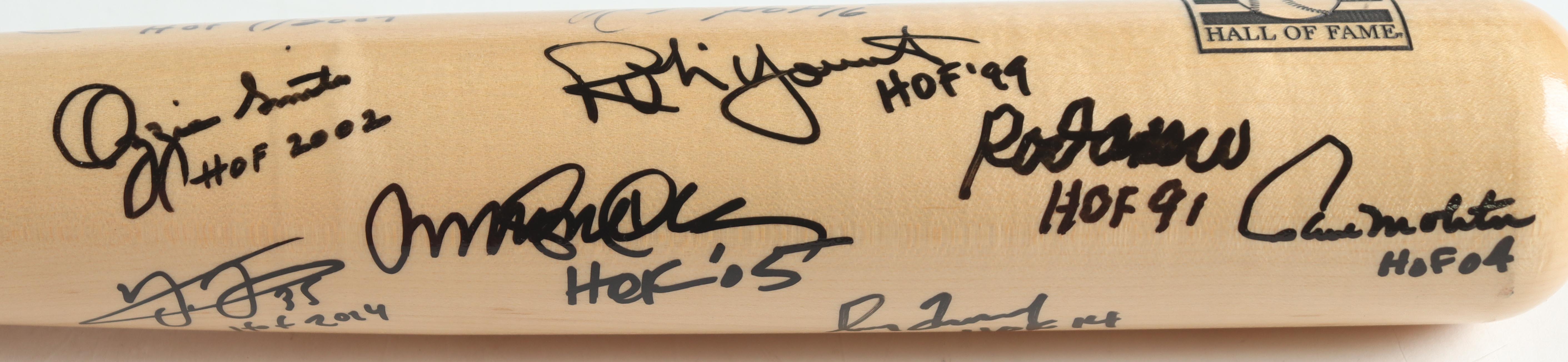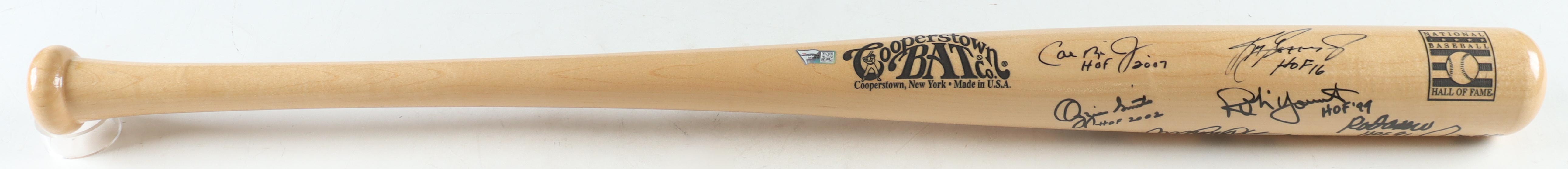 Baseball Hall of Famers Cooperstown Etched Baseball Bat Signed & Inscribed by (9) with Ken Griffey Jr., Cal Ripken Jr., Ozzie Smith, Rod Carew, Greg Maddux (Beckett, Fanatics & PSA)