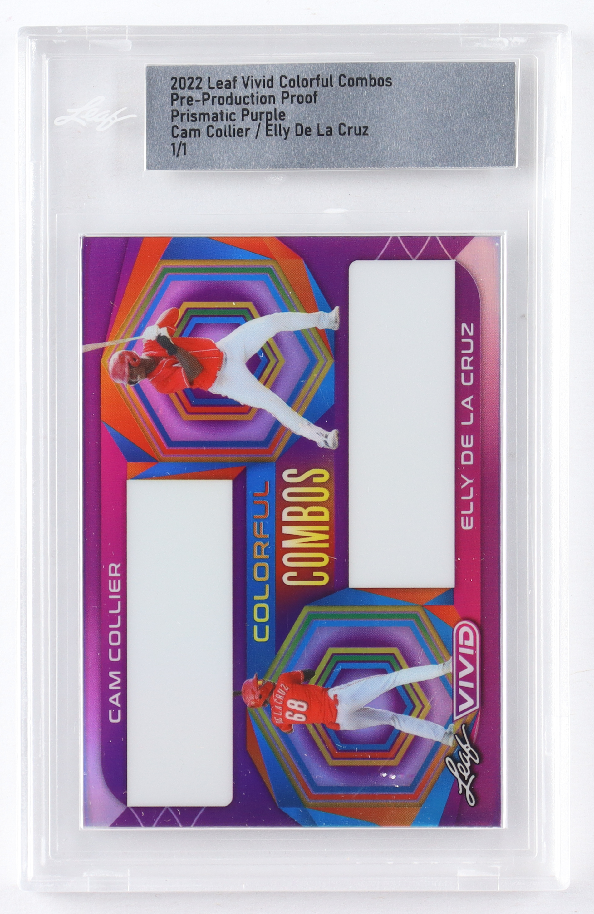 Cam Collier / Elly De La Cruz 2022 Leaf Vivid Colorful Combos Pre-Production Proof Prismatic Purple RC #1/1 (Leaf)