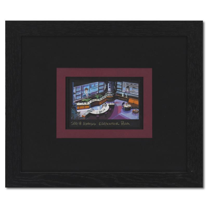 "Seq 18 Morning Elevator Bar" is an original story board production painting on paper from the Marvel animated series Avengers: Earth's Mightiest Heroes. This piece comes framed. Measures approx. 12.5" x 10.5" (frame), 5" x 4" (image).