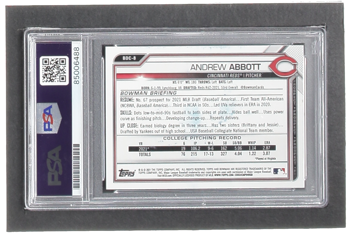 Andrew Abbott Signed 2021 Bowman Chrome Draft Refractors #BDC8 (PSA)