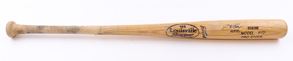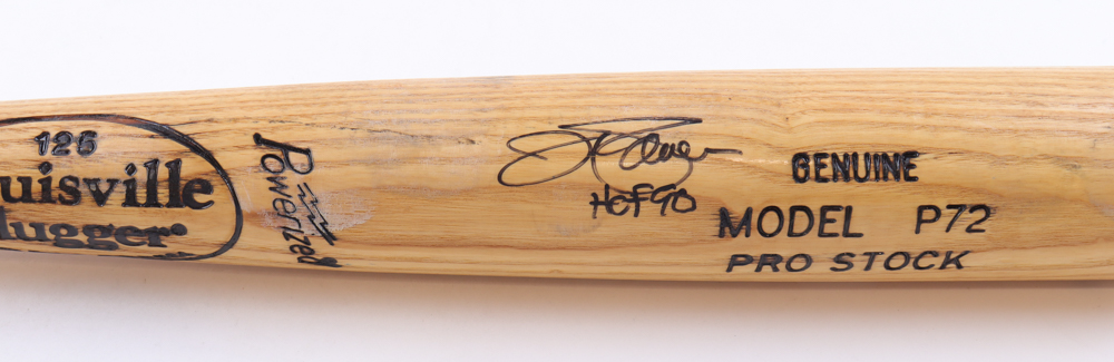 Louisville Slugger Model P72 Pro Stock baseball bat has been hand-signed and inscribed by Jim Palmer (Baltimore Orioles, HOF). Please note the bat is game-used and cracked by an unknown player.