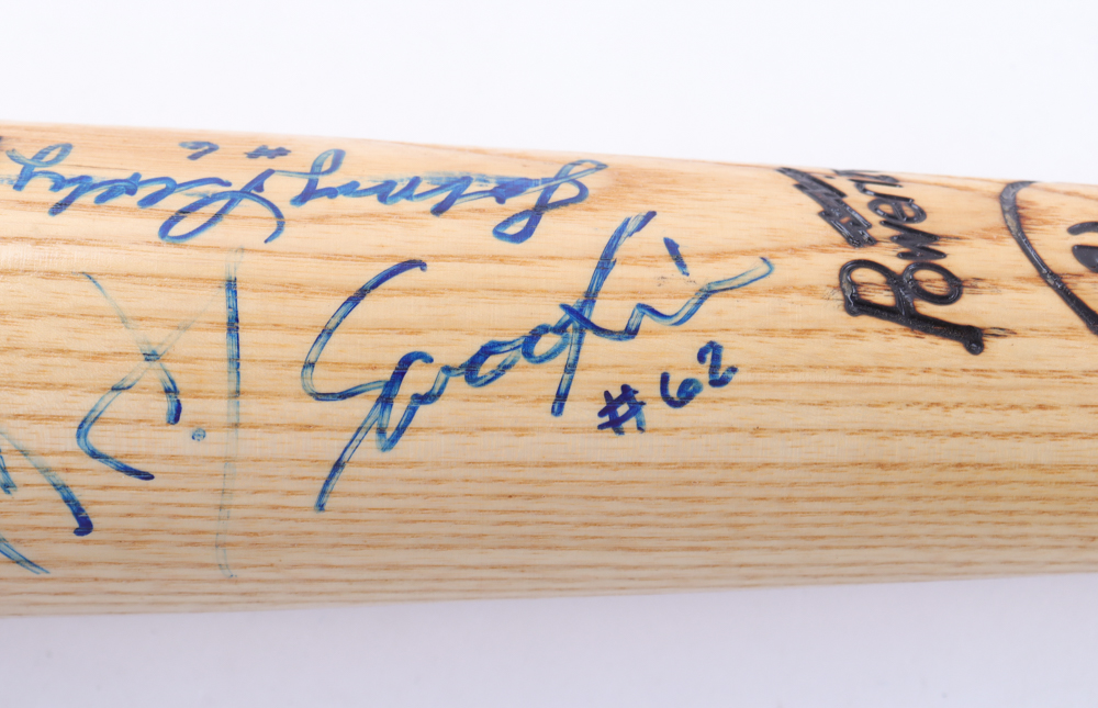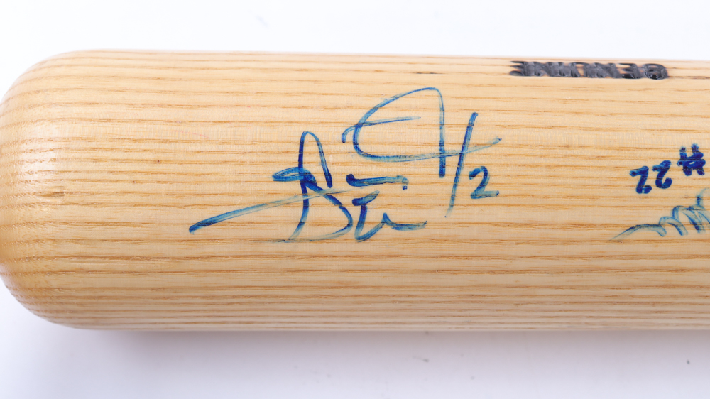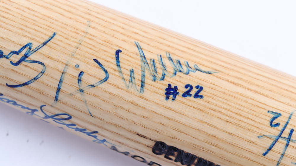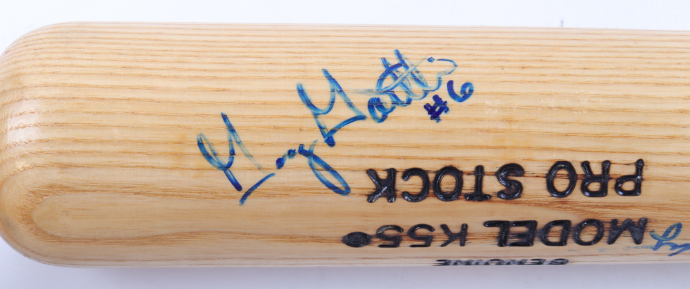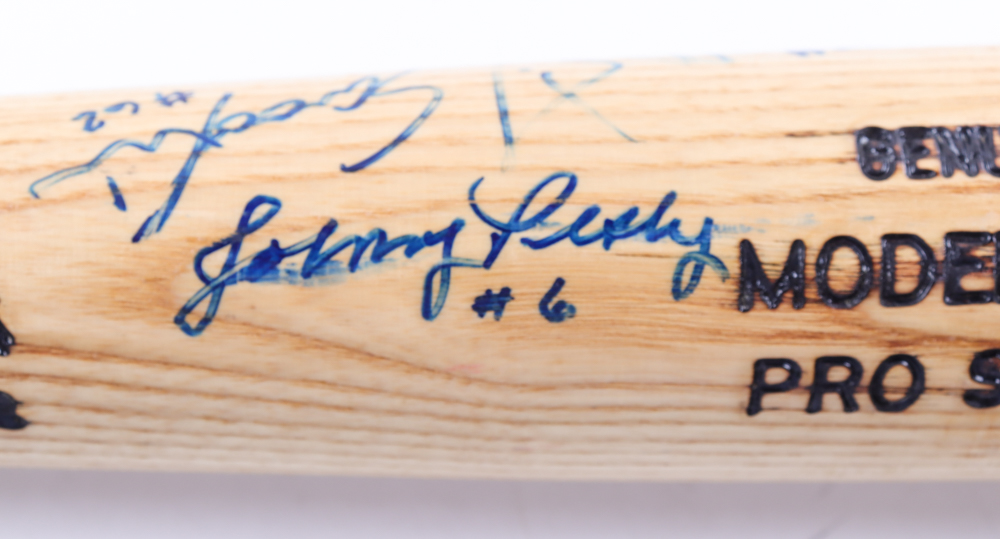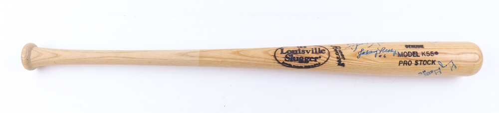 Louisville Slugger K55 Pro Stock baseball bat. Hand-signed by (7) Boston Red Sox players and coaches including Johnny Pesky, Carl Everett, Jimmy Williams and Gary Gaetti and (1) more.