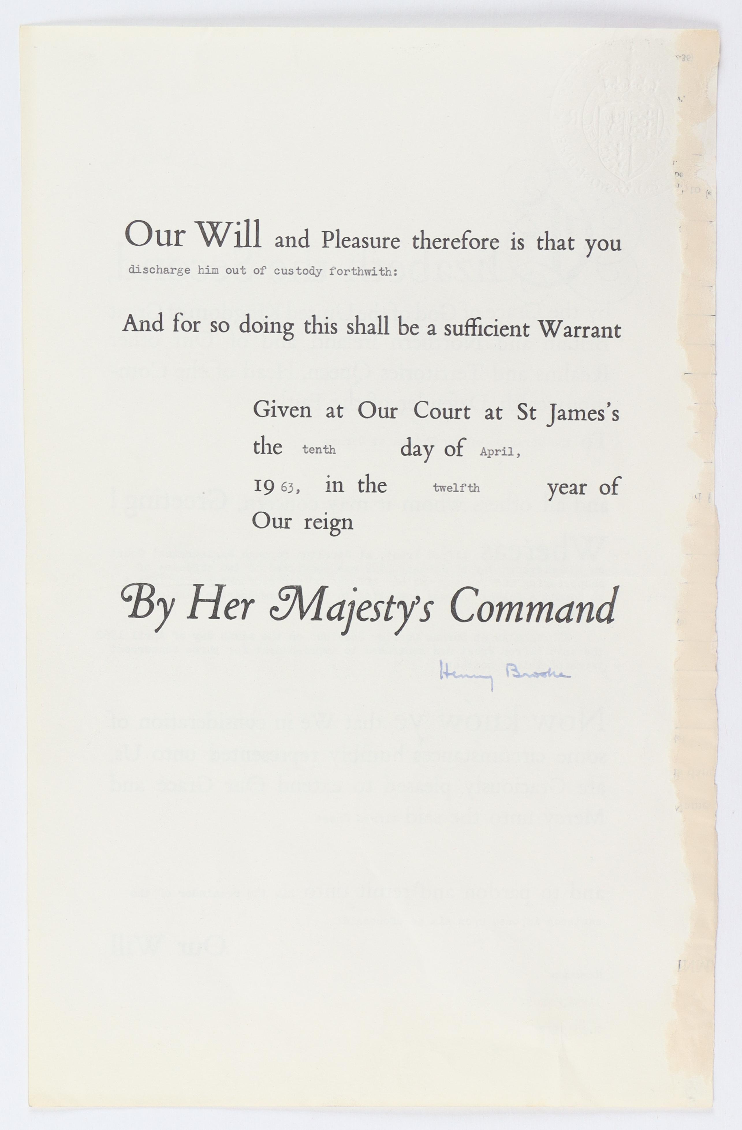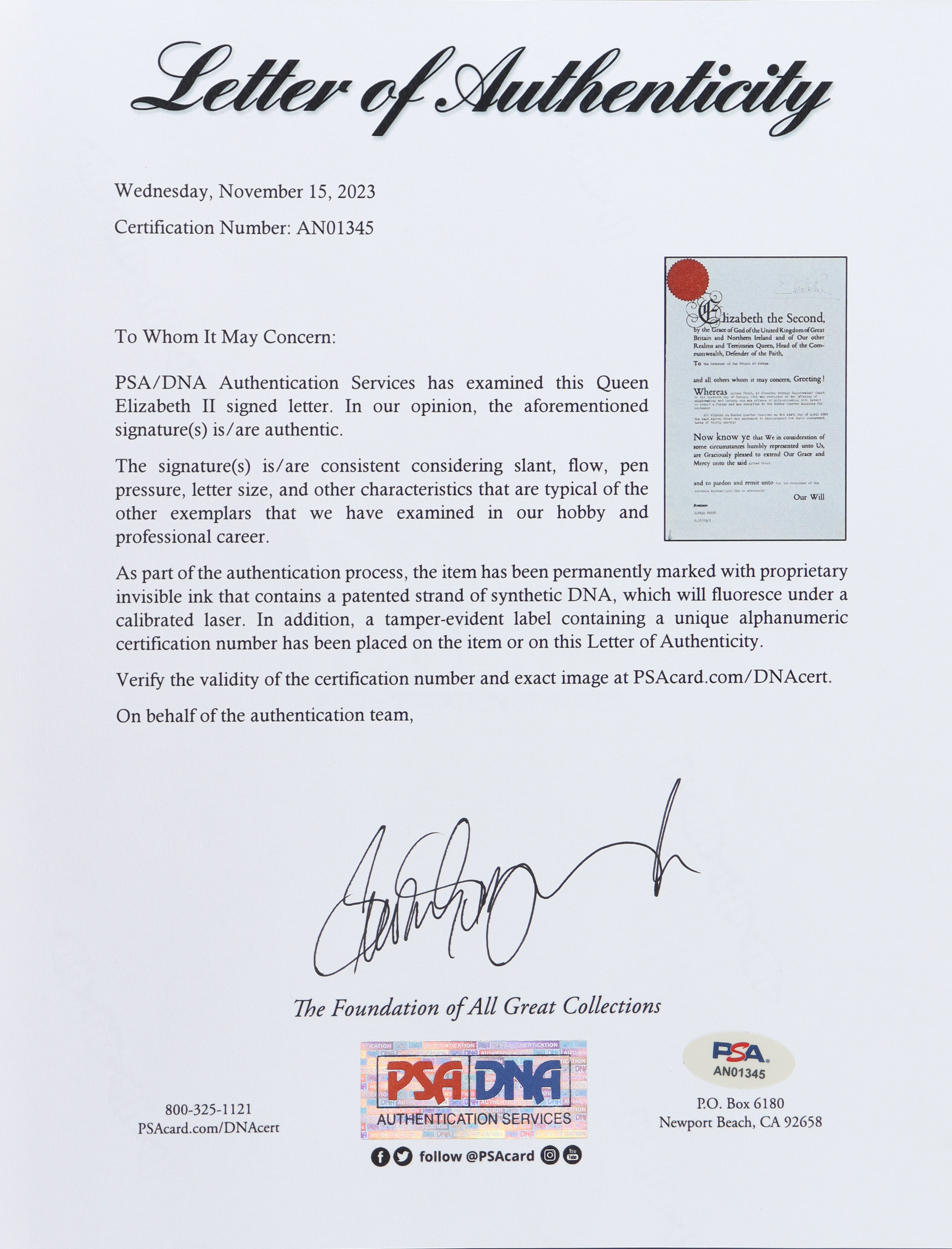 Queen Elizabeth II Signed 1960's Royal Pardon Letter (PSA)