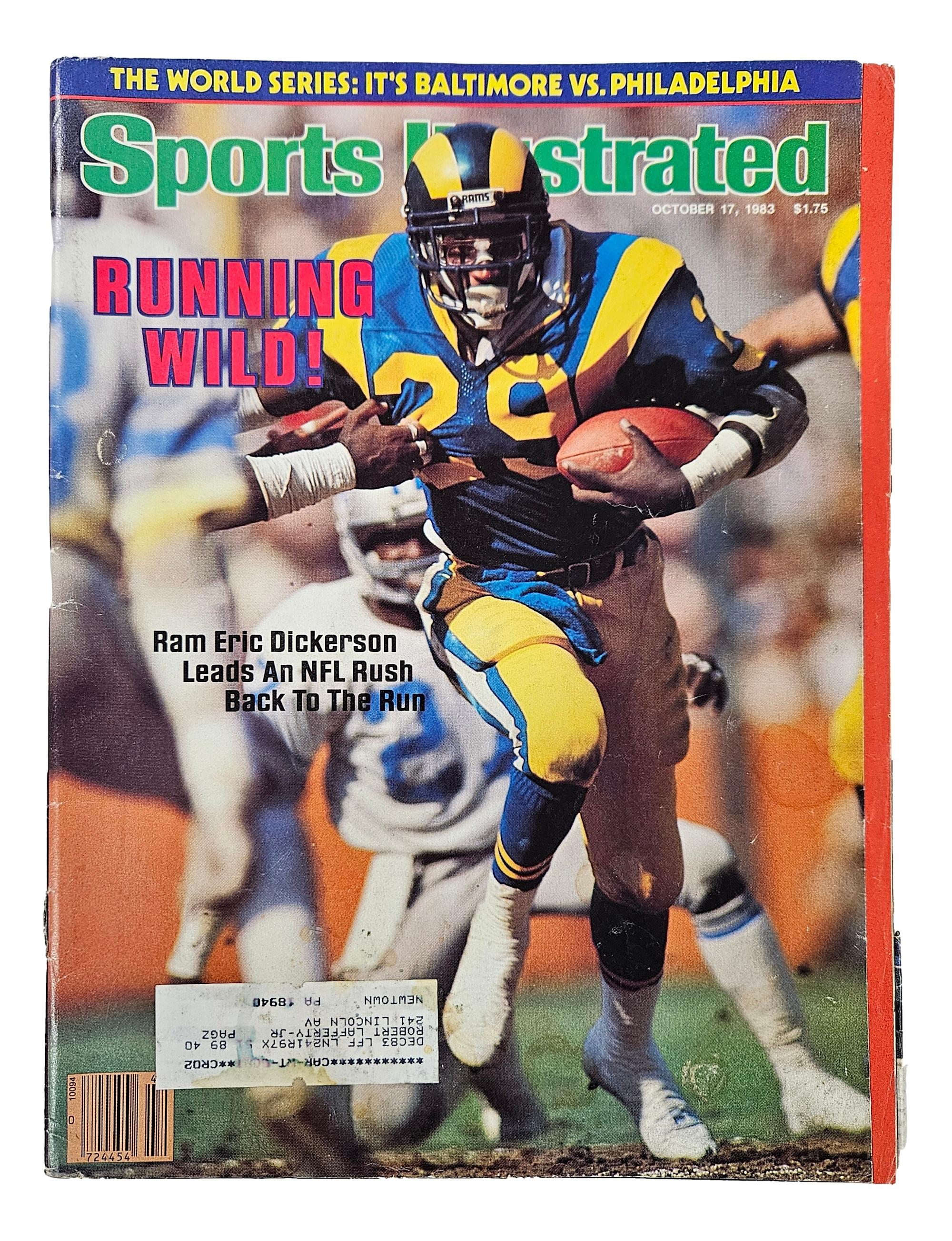 October 17th, 1983 "Sports Illustrated" issue magazine featuring Eric Dickerson (Los Angeles Rams) on the front cover. Please note, this item is unsigned.