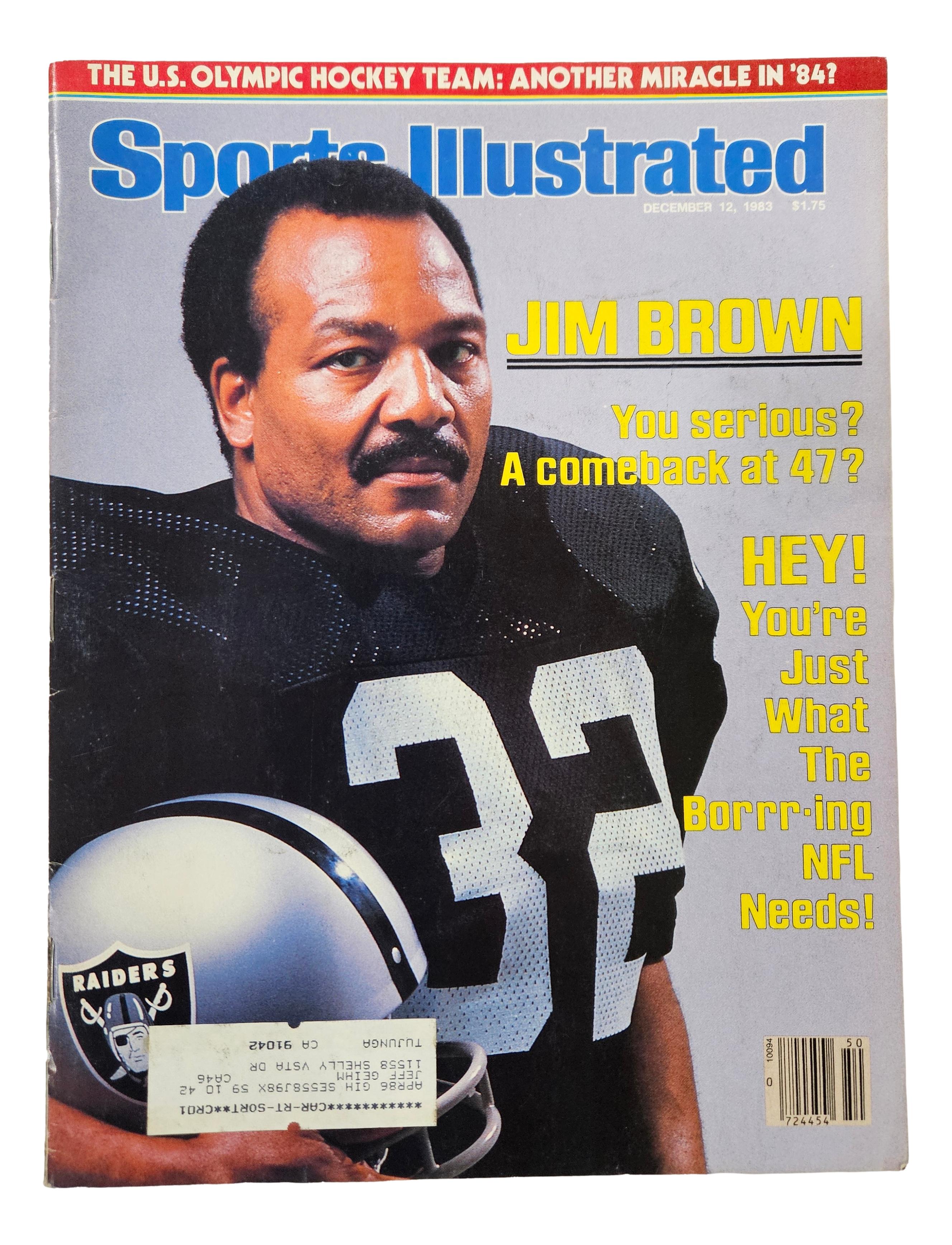 December 12th, 1983 "Sports Illustrated" issue magazine featuring Jim Brown (Oakland Raiders) on the front cover. Please note, this item is unsigned.