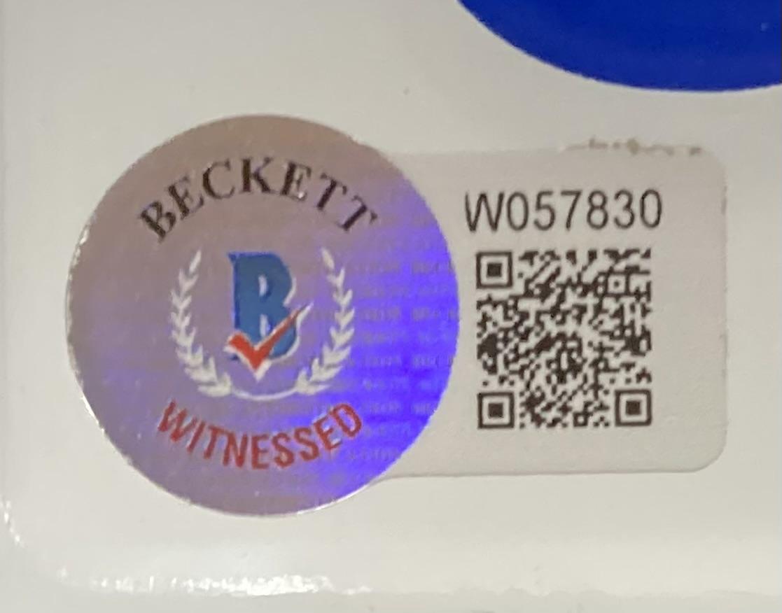 The autograph includes an official Beckett Authentication Services serially numbered hologram as well as an official James Spence Authentication (JSA) hologram for authenticity purposes. The signing of this item was witnessed by Beckett.