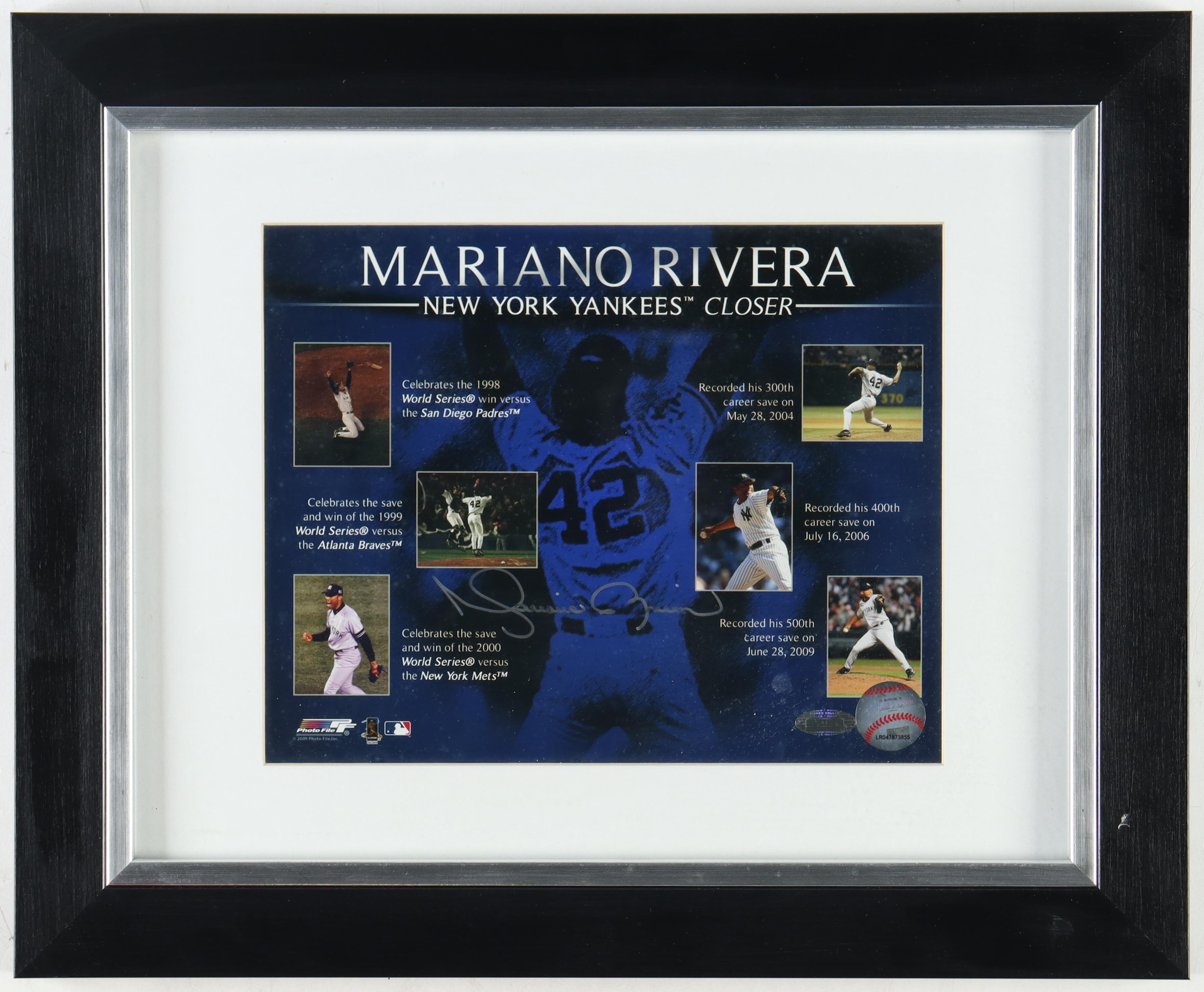 Display measures approximately 14" x 17" in size. Hand-signed by Mariano Rivera (HOF). Please refer to photos for condition of the display.