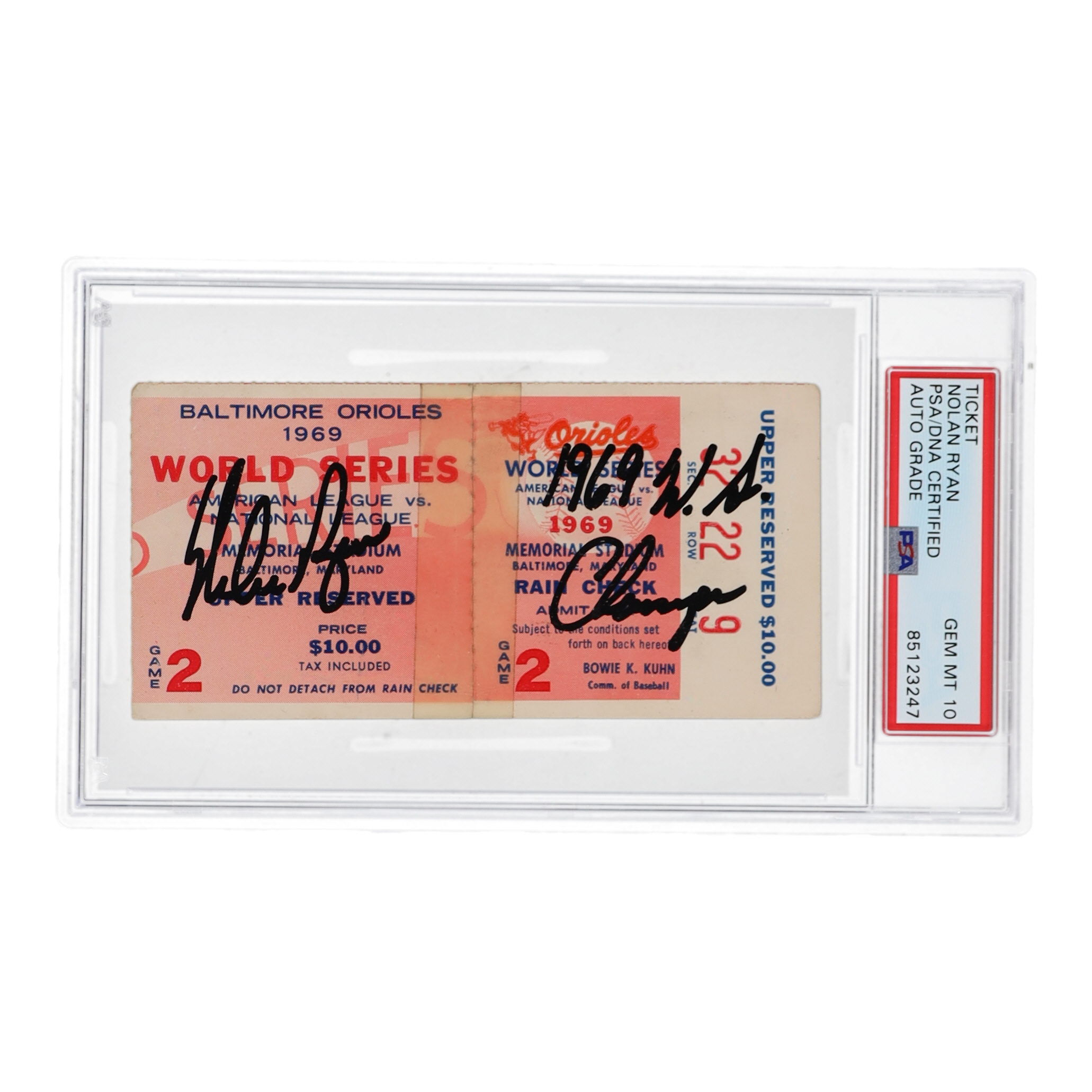 Nolan Ryan Signed 1969 World Series Original Ticket Inscribed "1969 W.S. Champs" (PSA | Auto Grade 10)