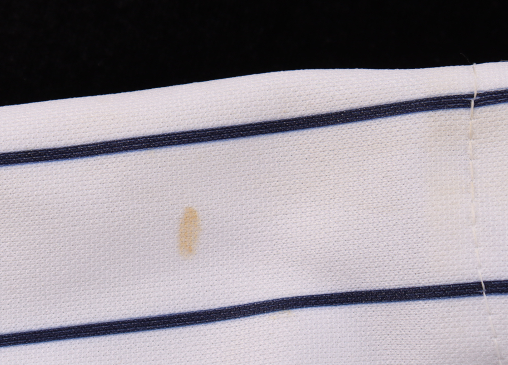 Majestic jersey. Everything sewn on, size 2XL. Hand-signed by Johnny Damon (New York Yankees). Please note, the front of the jersey is stained.